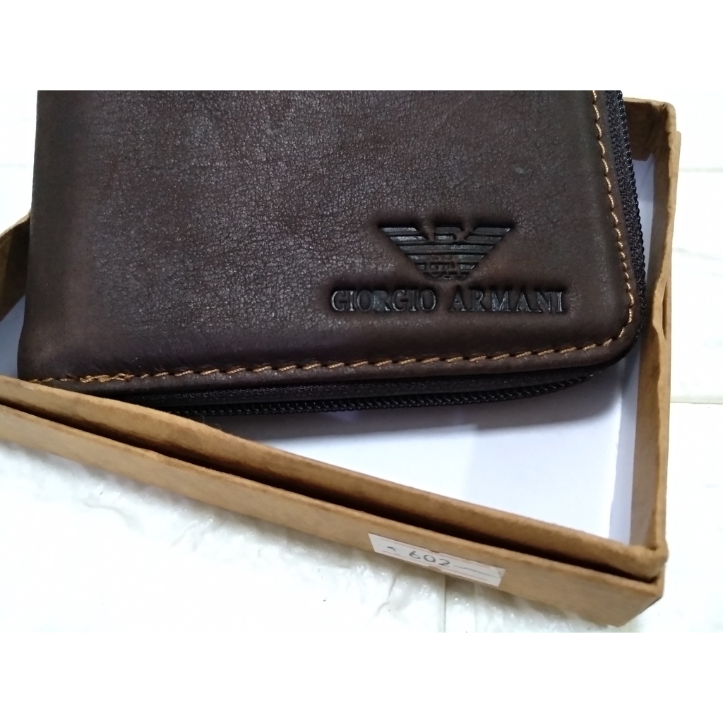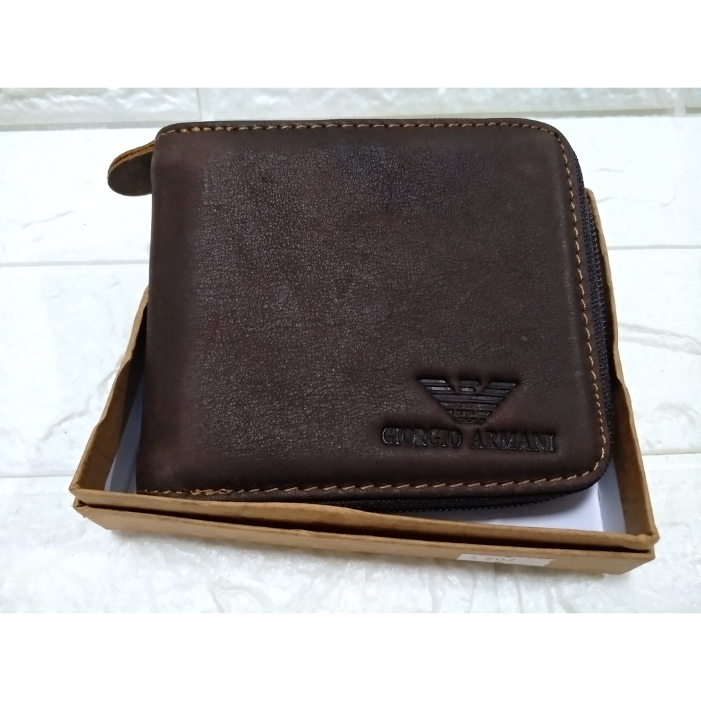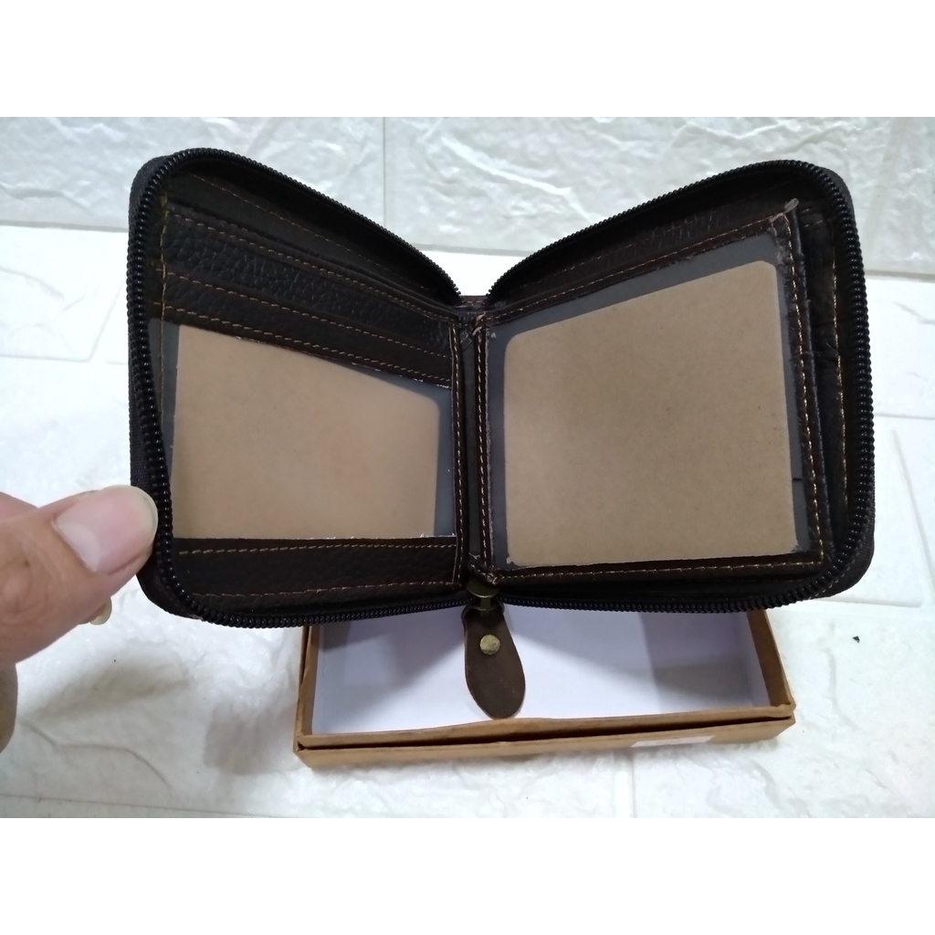 Wallet Leather zip (with box) genuine 100% leather cowhide short dompet kulit lembu asli pendek free kotak unisex lelaki