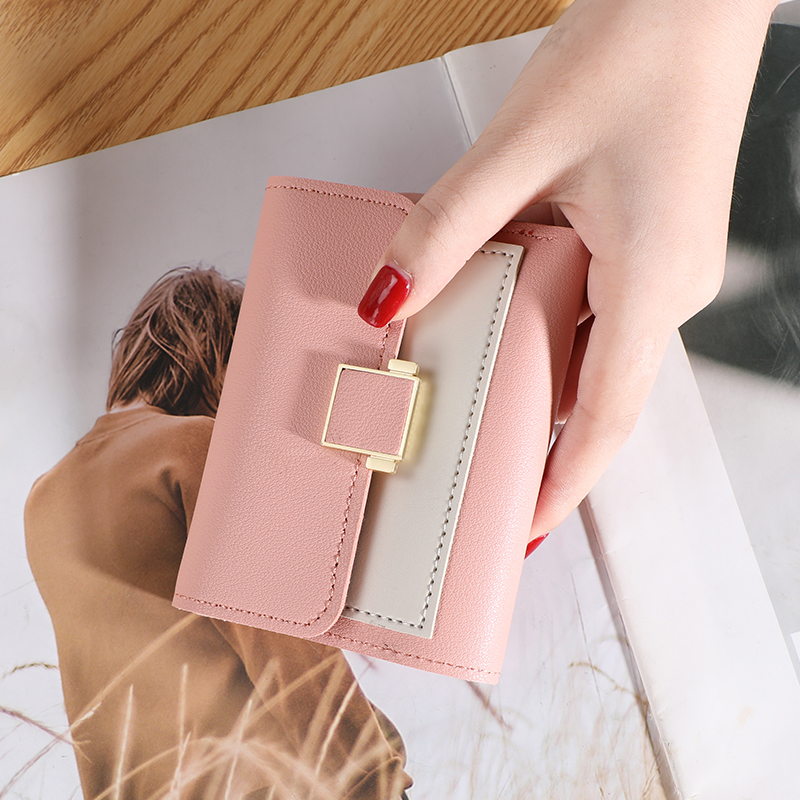 Women's Mini Wallet Color Block Korean Style Cute Short Coin Purse Student Card Holder