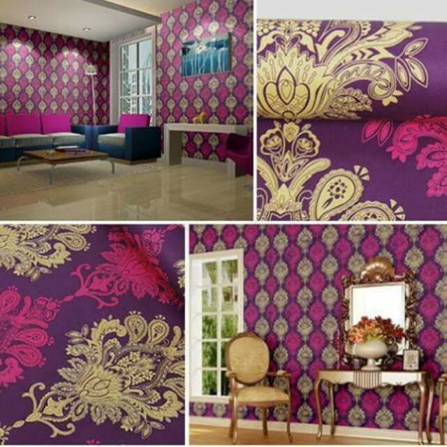 Wallpaper kerawang 077 10meter kyk purple sticker wall paper kertas dinding