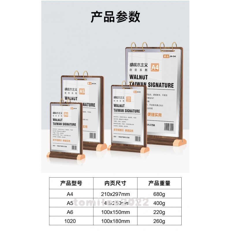 Walnut Flip Table Card Menu Loose-Leaf Book Promotional Display Stand Wooden Stand Table Price Menu Table Sign Table Card