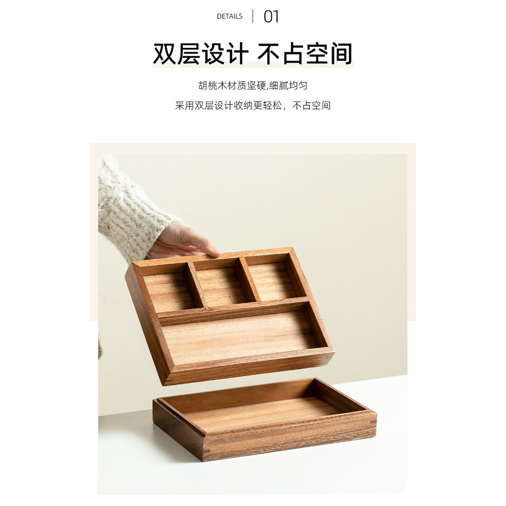 Walnut Square Double Layer Refreshment Box New Year Candy Box Dried Fruit Box Compartment Snack Storage Nut Box [A212]