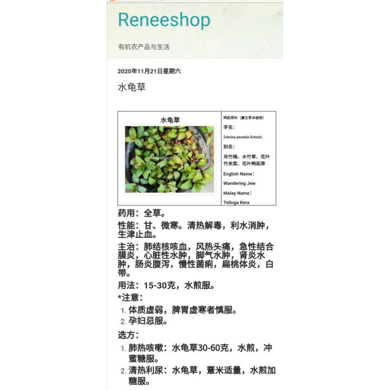 Wandering Jew/ 水龟草带根系/ Telinga Kera KERATAN BERAKAR