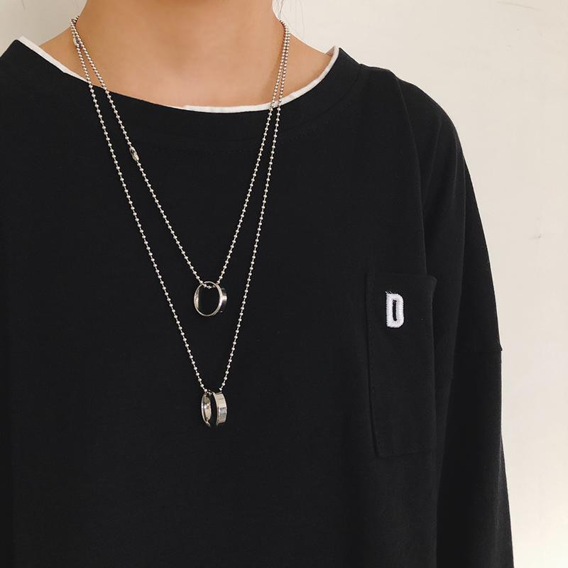 Wang Yibo the same necklace men and women trendy simple ring finger ring pendant personality hip-hop sweater chain coupl