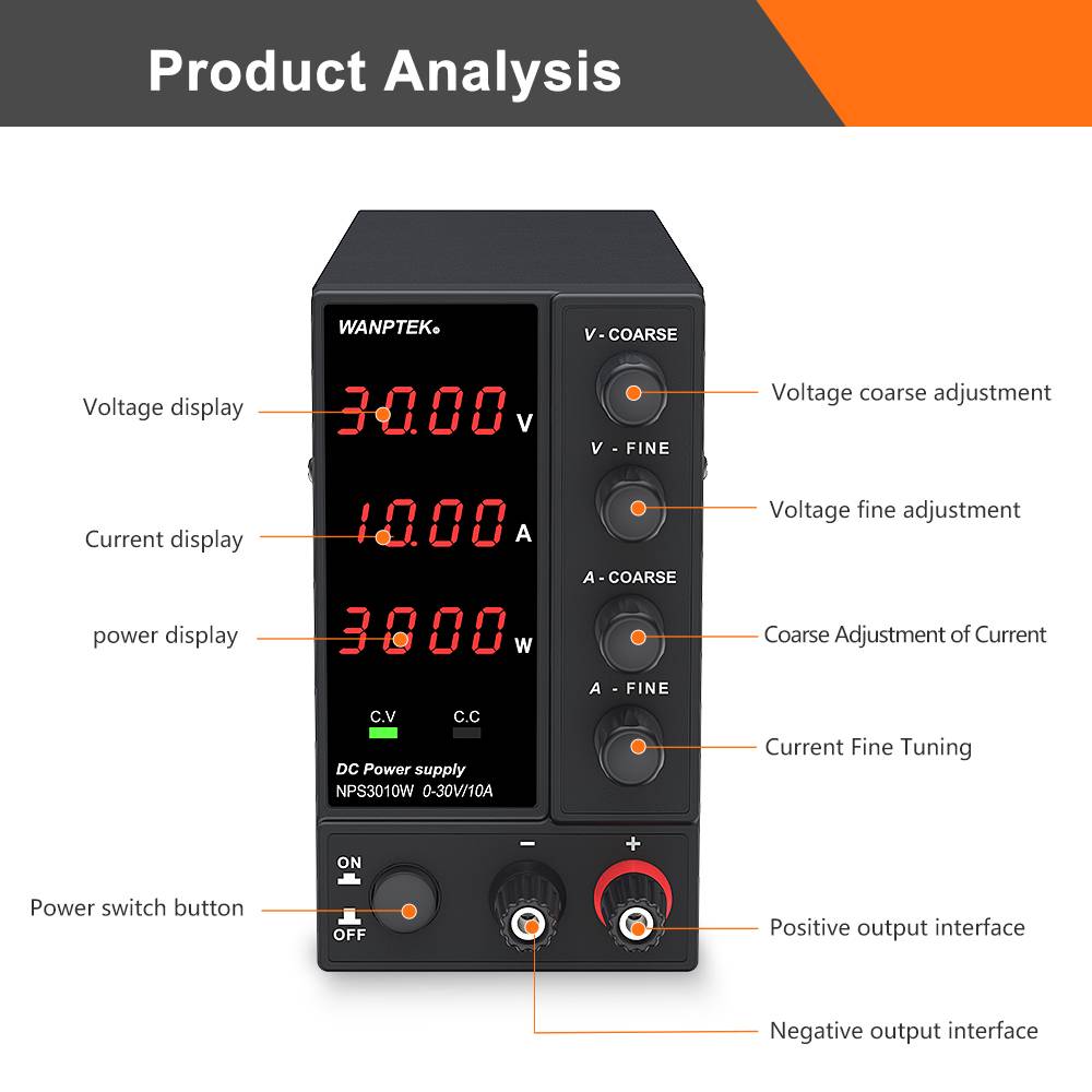 Wanptek DC Power Supply Adjustable 60V 5A Voltage Regulator Switch LED Lab Bench Source 30v 10a Variable Power Supply NPS3010W