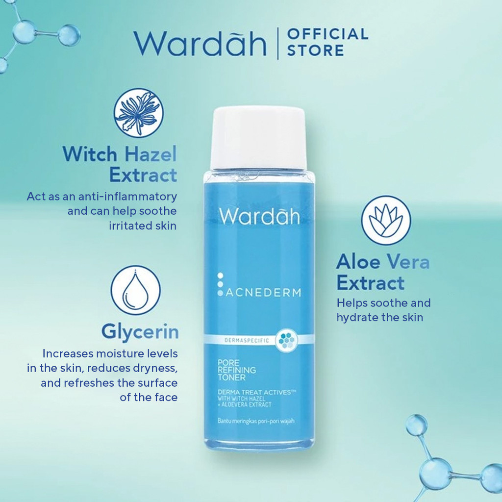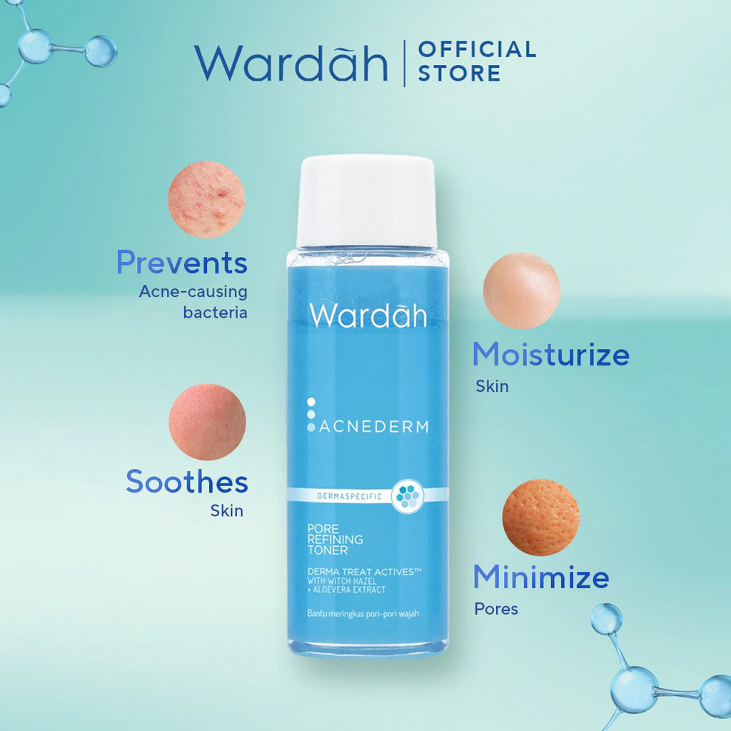Wardah Acnederm Pore Refining Toner 100 ml - Acne Prone Skin, Reduces Redness, Excessive Oil Control with Tea Tree Oil