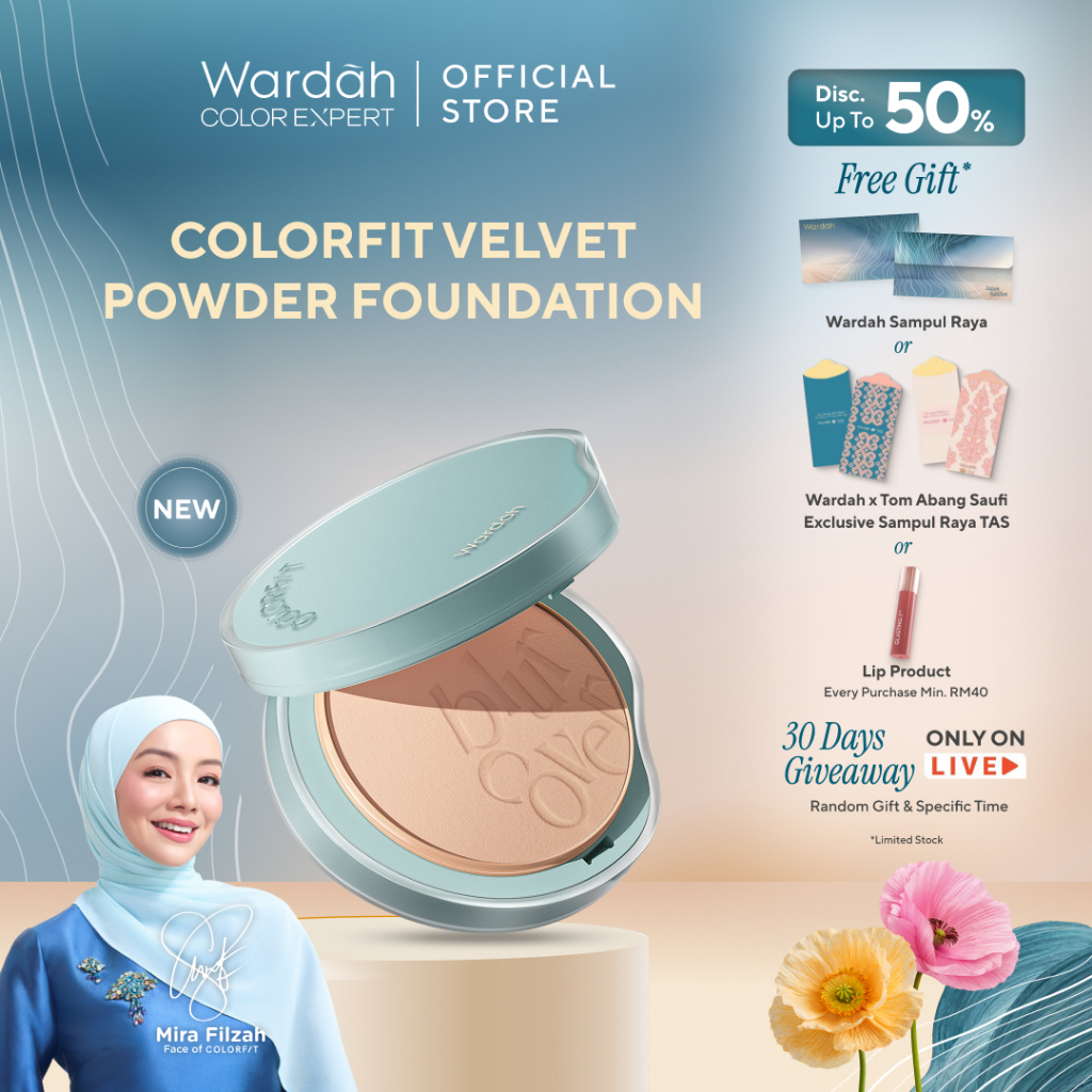 [RAYA BERSERI] Wardah Colorfit Velvet Powder Foundation SPF33 PA++|Raya Glow,Suci Lebaran,Free Sampul Raya