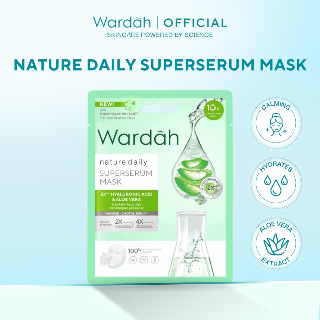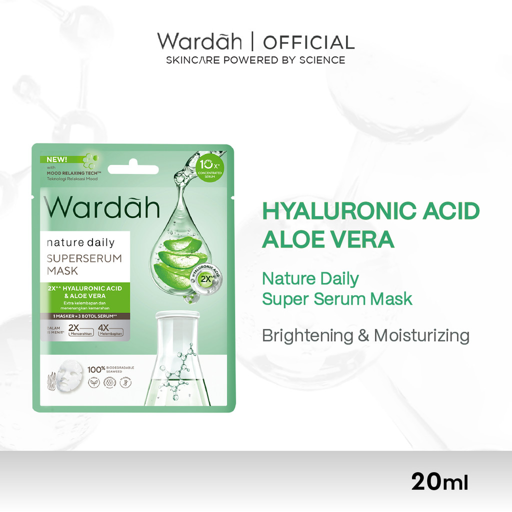 Wardah Nature Daily SuperSerum Mask 20 ml - Extra Hydartion and Calms Redness with Hyaluronic Acid and Aloe Vera Extract