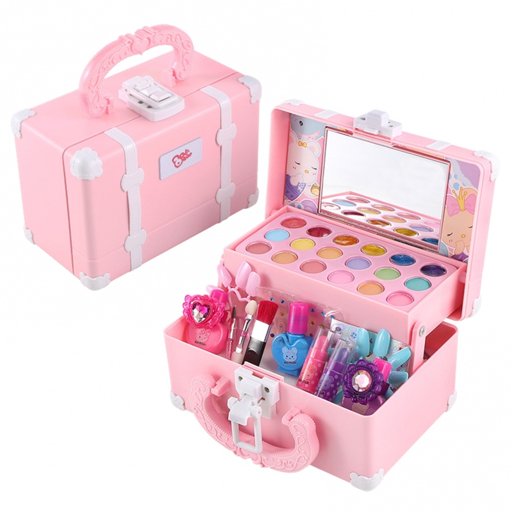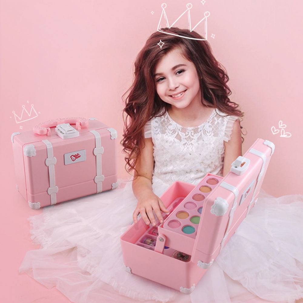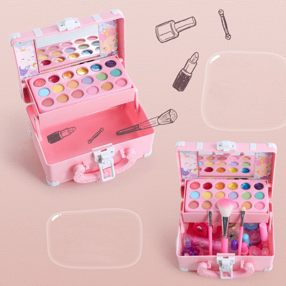 Washable Kids Makeup Kit for Little Girls, Real Makeup Toy Set with Retro Beauty Makeup Box Nail Polish Lipsticks Brushes & Mirror, Safe and Non-toxic