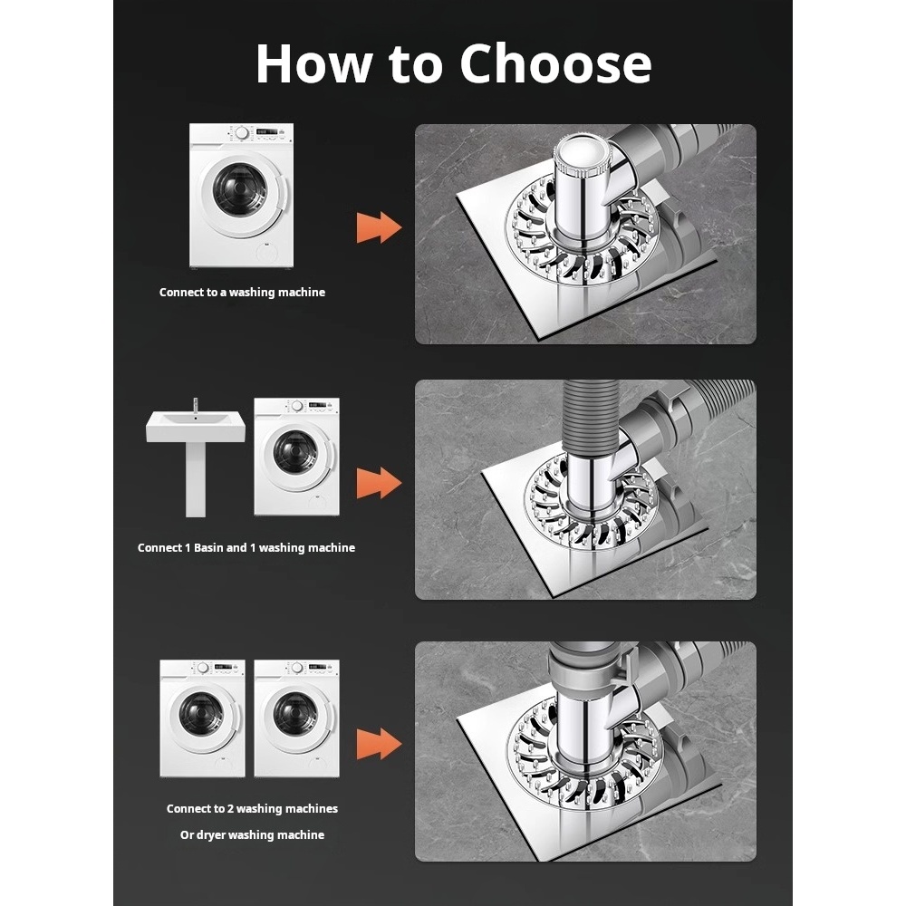 Washing machine drainage pipe three-way floor drain special joint, dryer splitter 2-in-1 double drainage interface bathroom model