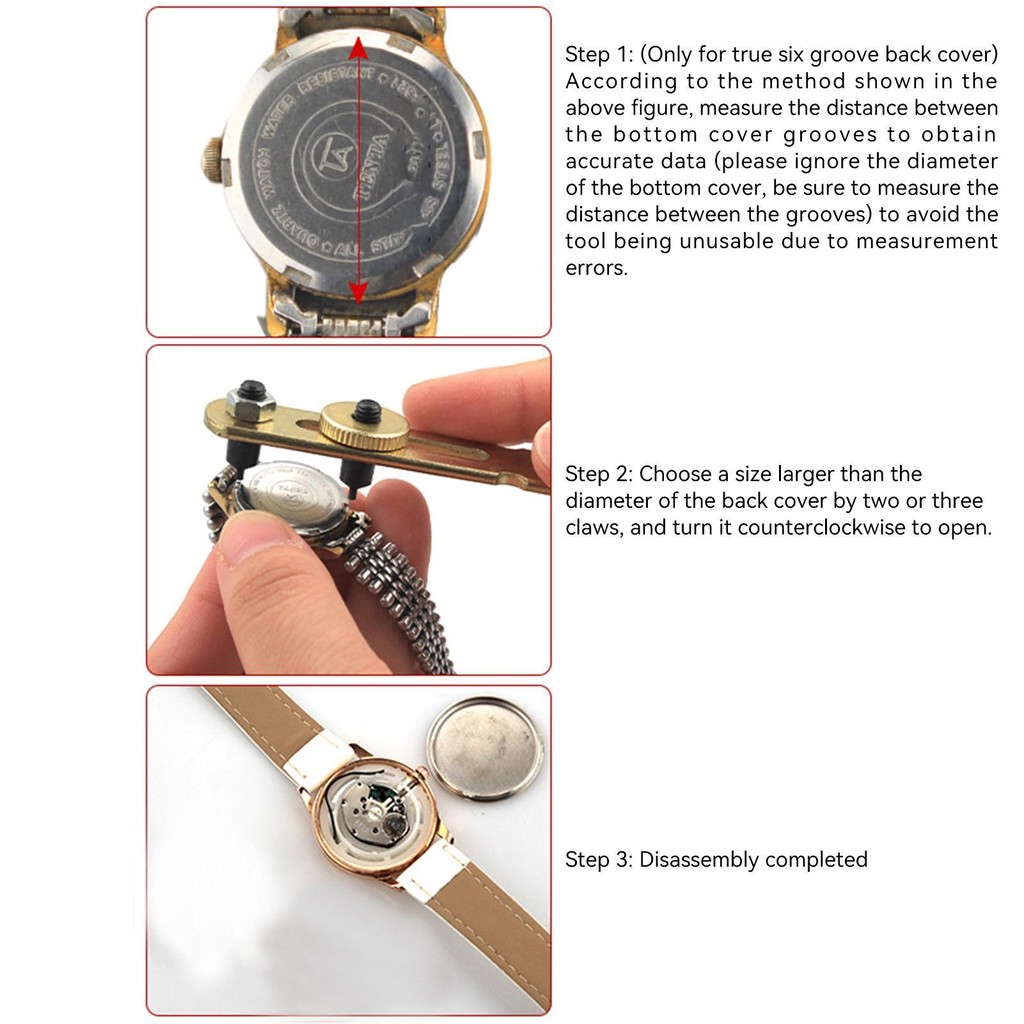 Watch Back Remover Tool Adjustable Watch Back Opener Wrench-Type Opener Remover for Watch Battery Replacement
