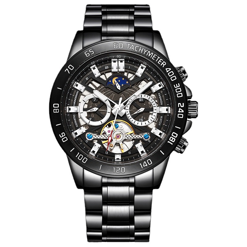 Watch men's high-end automatic mechanical watch waterproof luminous Tourbillon solid steel band multi-functional men's