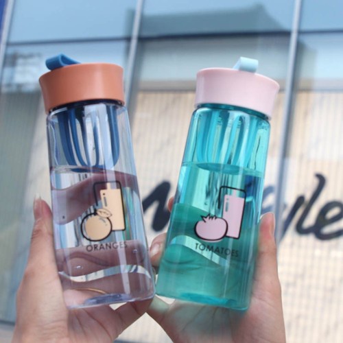 Water Drinking Bottle 650ML With Cute Design Fruits School Office Sports Botol Air Minuman Plastik Lut Sinar menarik