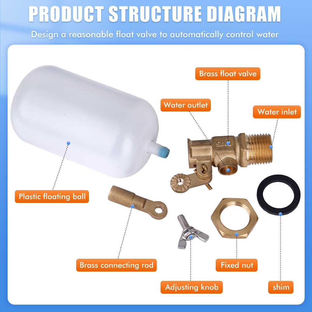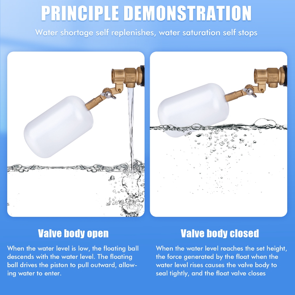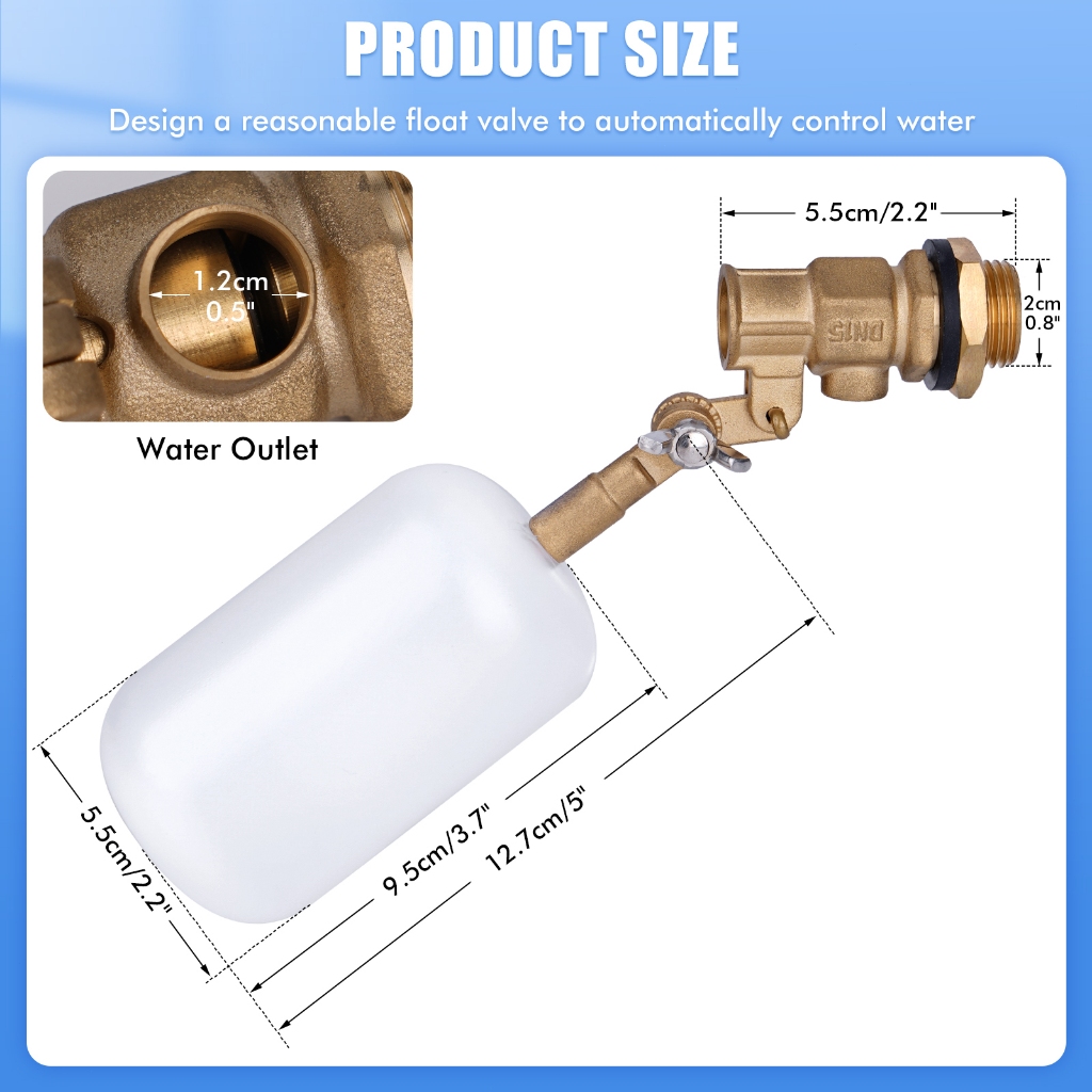 Water Float Valve 1/2 Inch Float Valve Water Float Valve for Pond Float Valve Shutoff Auto Fill for Livestock Tanks Aquariums