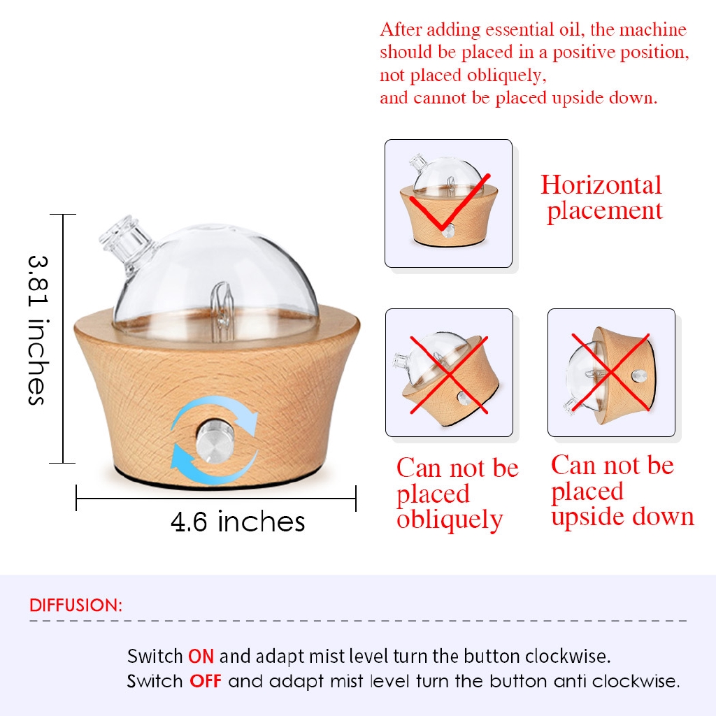 Waterless Essential oil Aromatherapy Diffuser with Wood and Glass Professional Grade Nebulizing Oil Diffuser, Super Quiet, No Water, No Heat, No Plastic