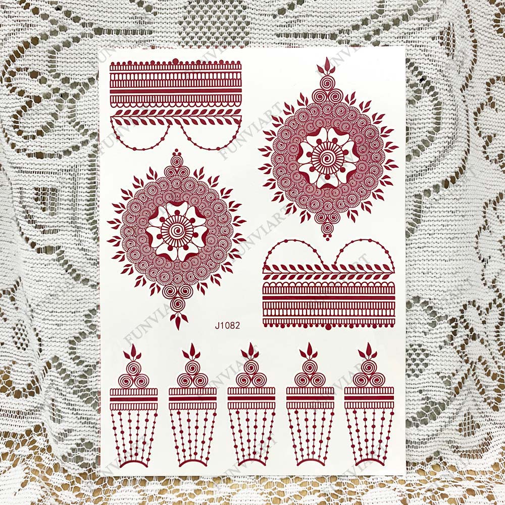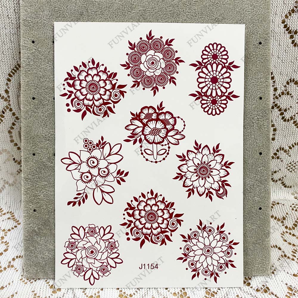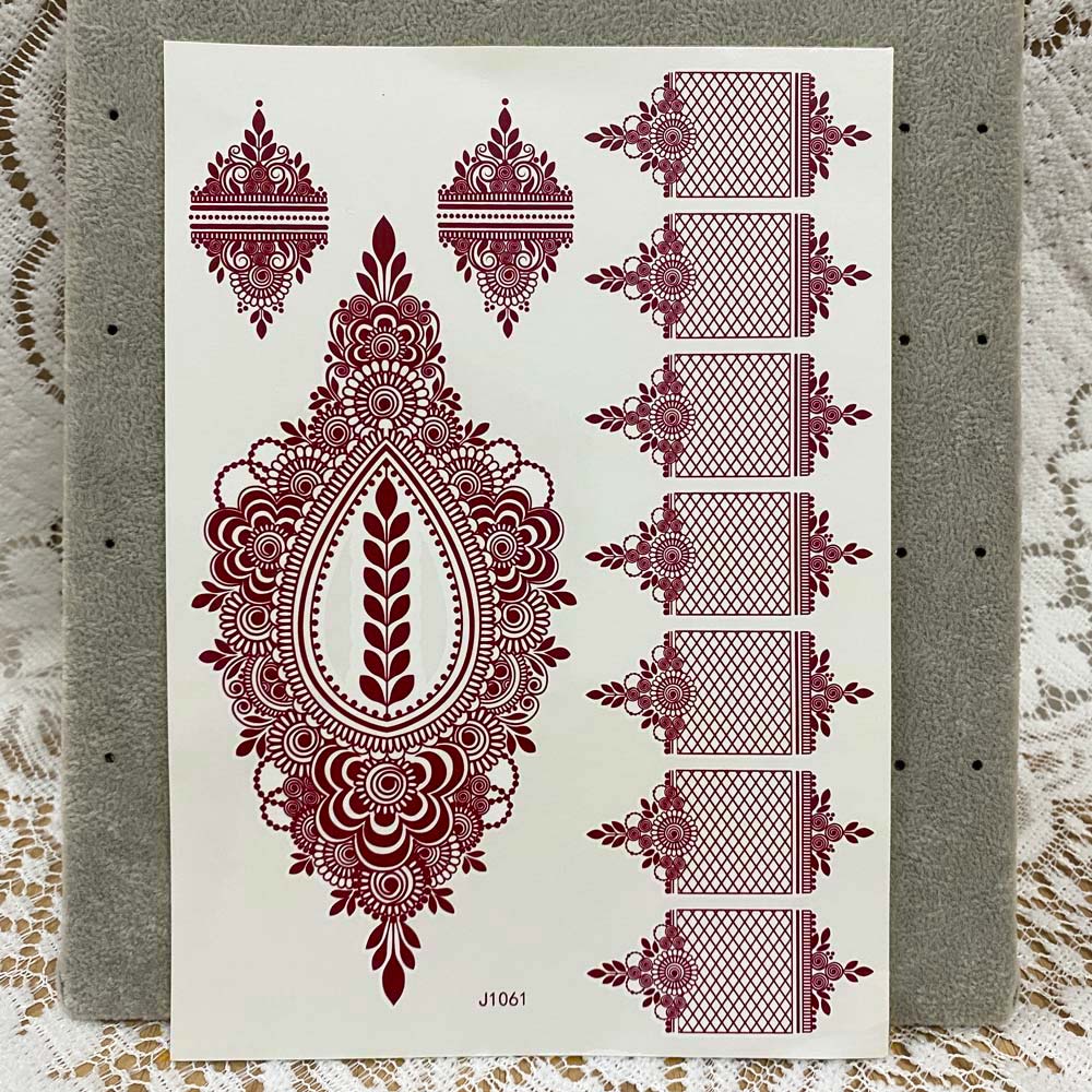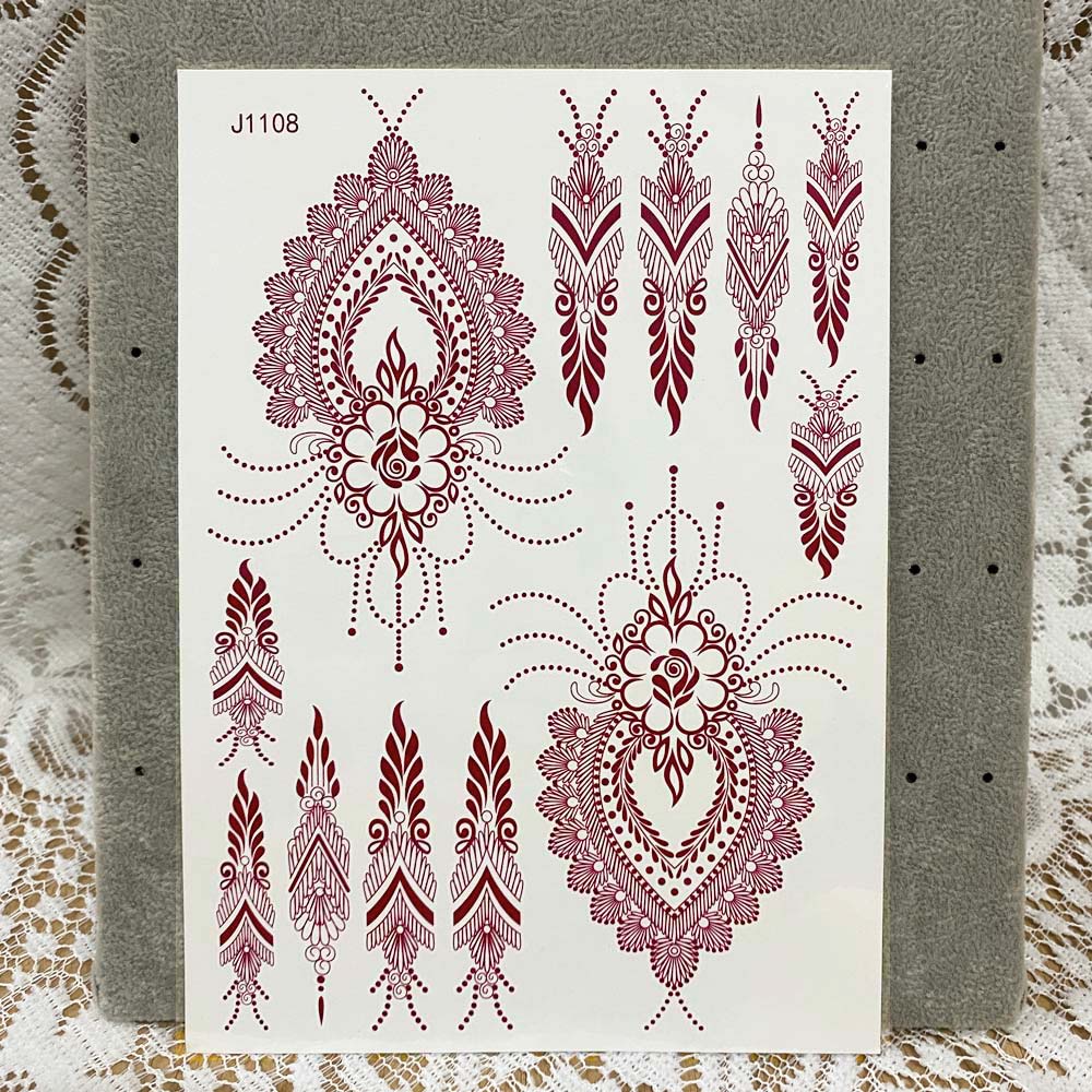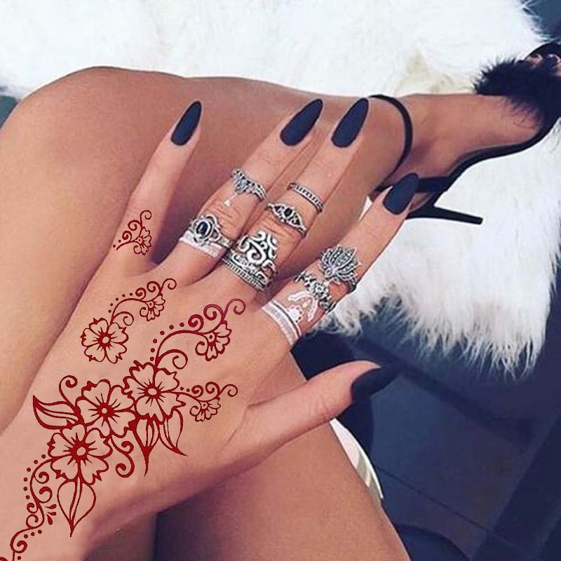 Waterproof Henna Tattoo Red Henna Stickers for Hand Fake Tattoo for Women Body Art Temporary Hena Design Mehndi Stickers