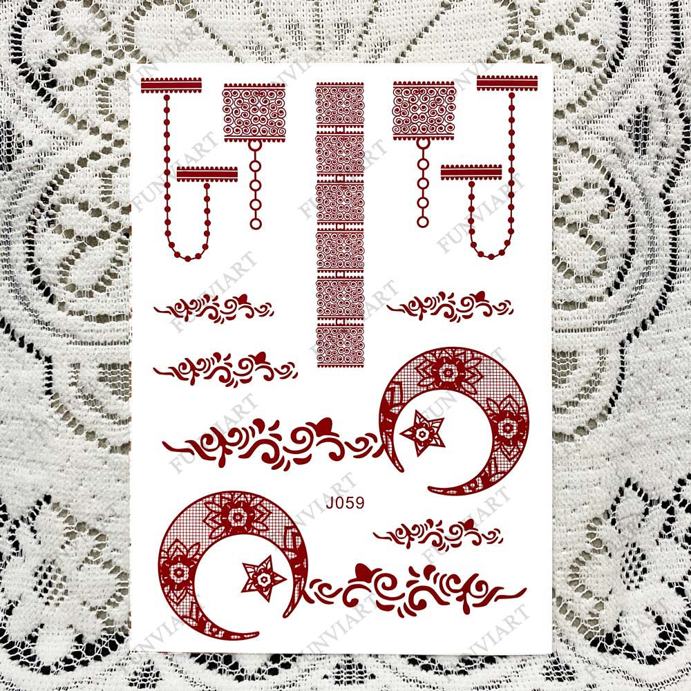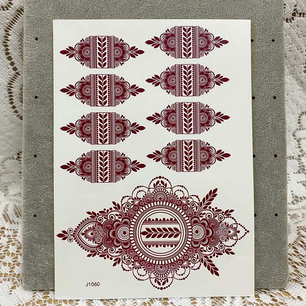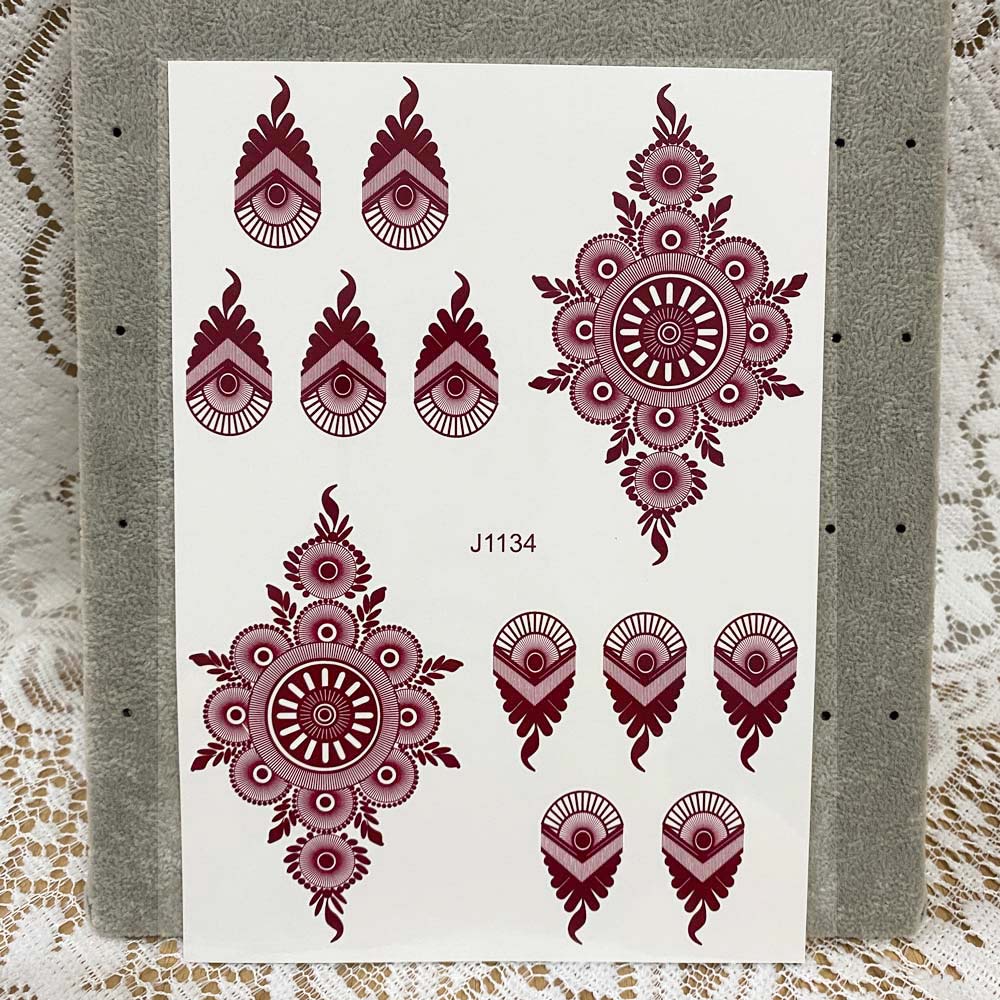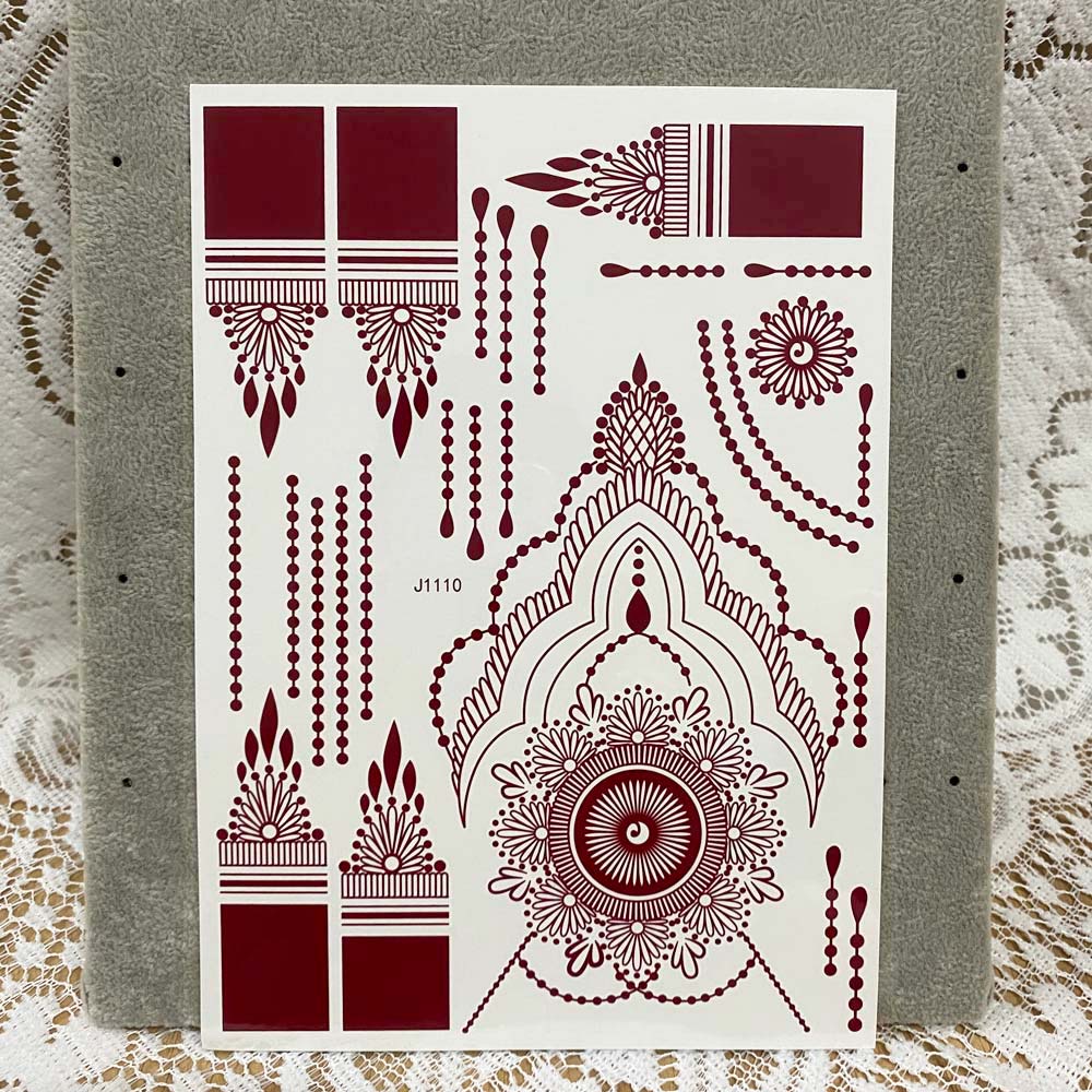 Waterproof Henna Tattoo Red Henna Stickers for Hand Fake Tattoo for Women Body Art Temporary Hena Design Mehndi Stickers