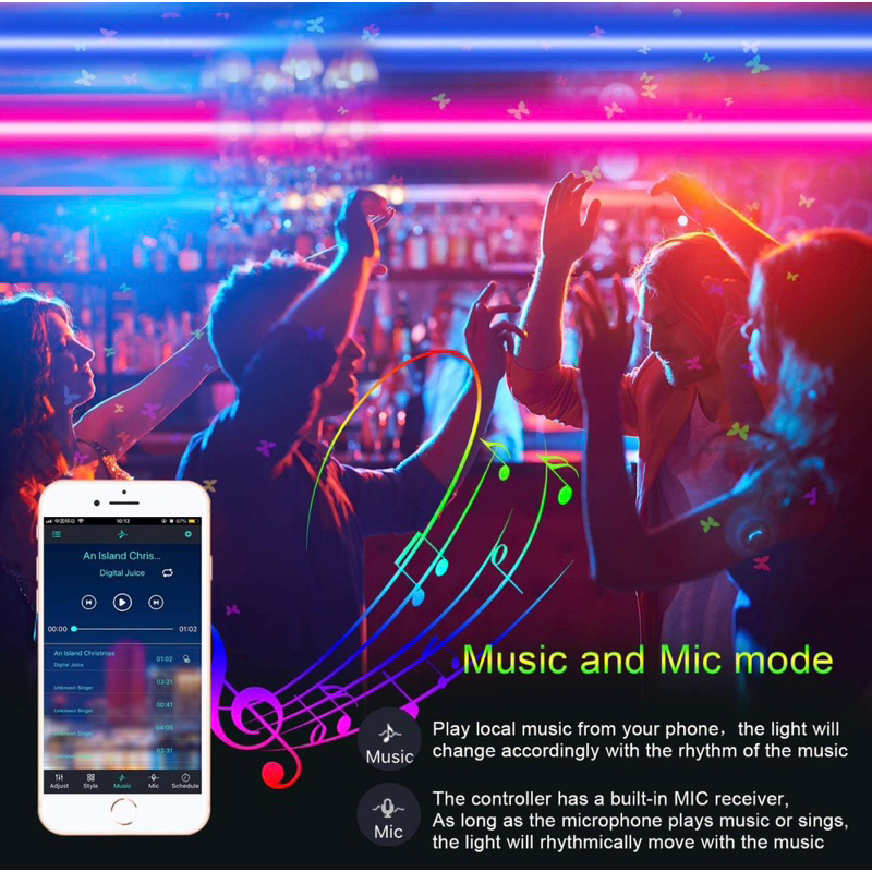 Waterproof Led Light Strips 10m IPS65,12vRGB Outdoor Led Strip Lights Waterproof Color Changing RGB with Bluetooth Music