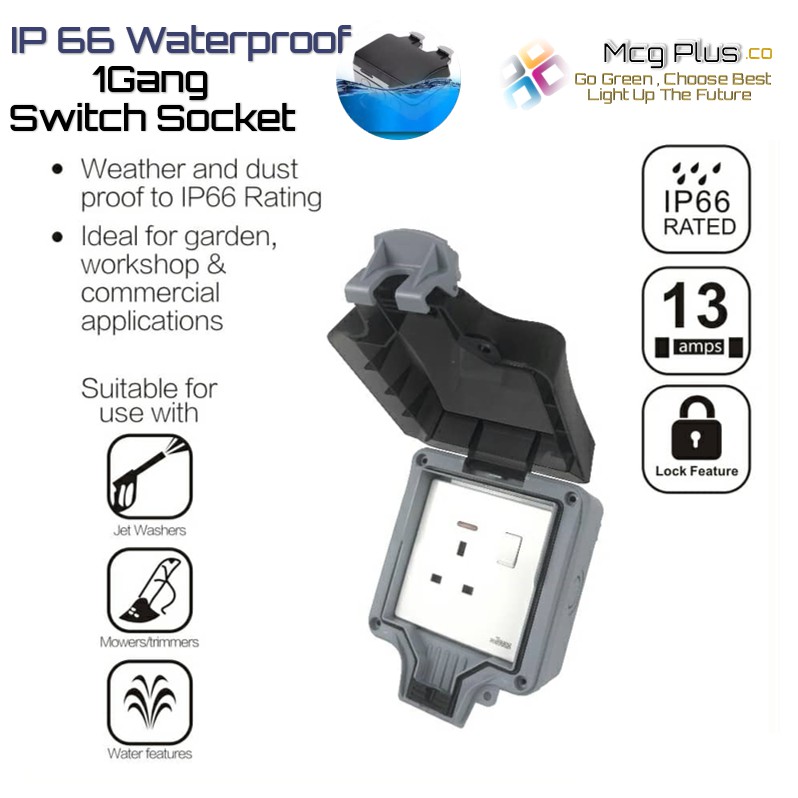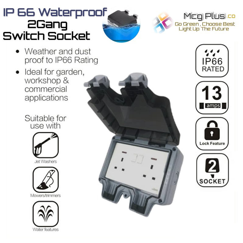 Waterproof Outdoor 13A Single/Double Switch Socket With Safety Cover IP66 Rated Outdoor Weatherproof 13A Switch Socket