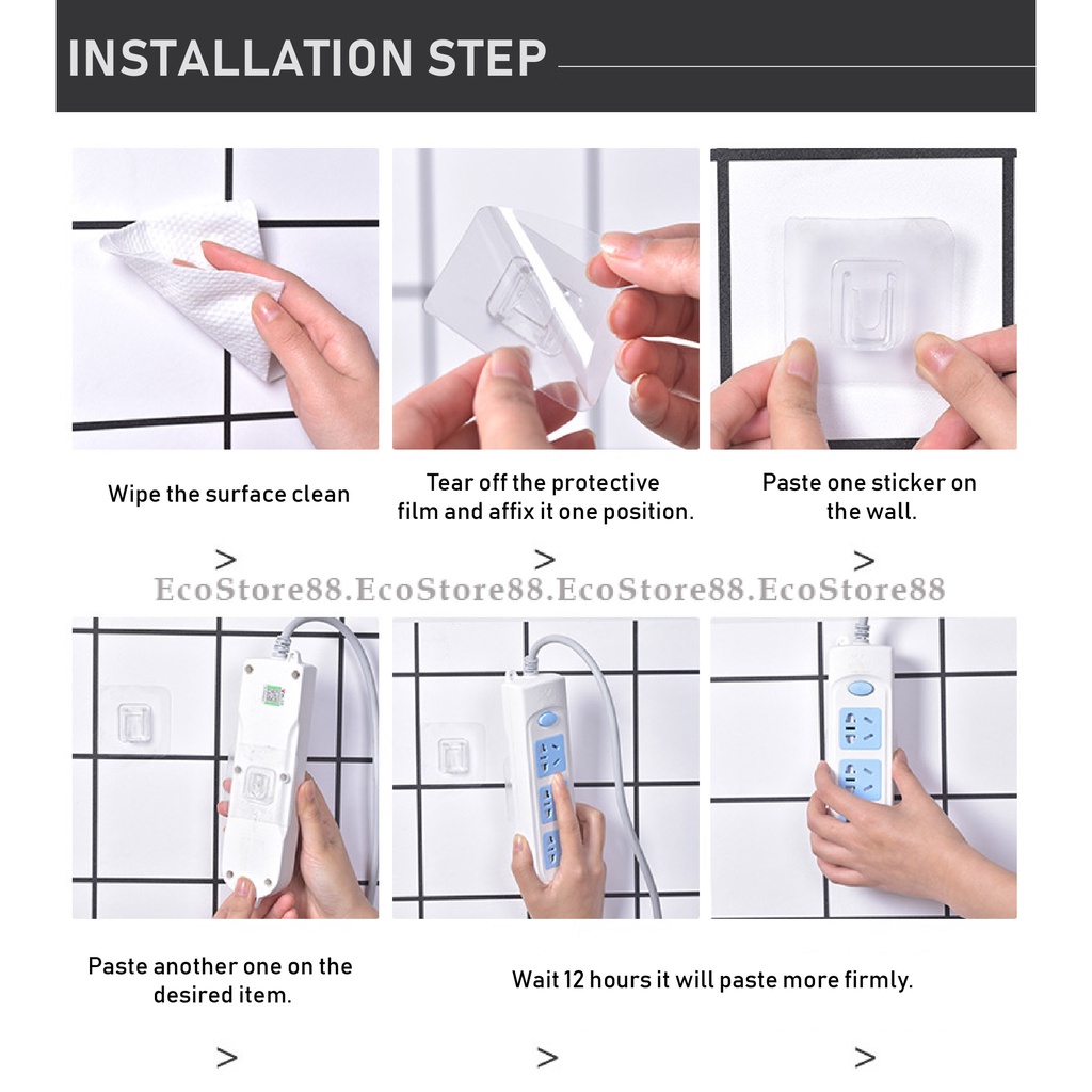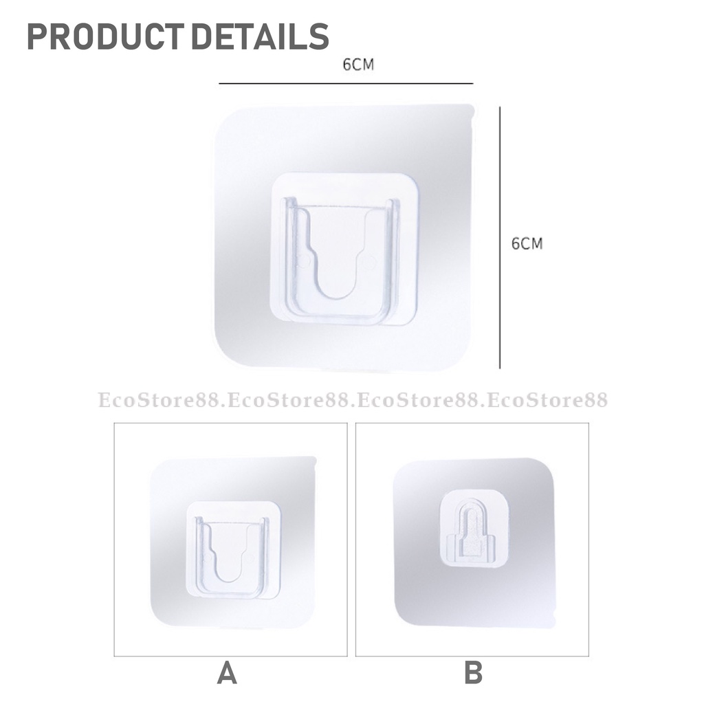 Waterproof Transparent Sticky Hook No-punch Strong Double Sided Adhesive Wall Hook Bracket Cangkuk Dinding