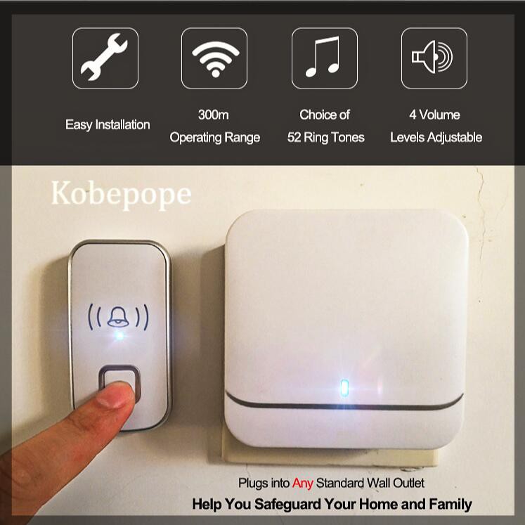 Waterproof Wireless Doorbell 300M Radius Security Alarm Smart Door Bell LED Light Receiving Prompt Doorbell