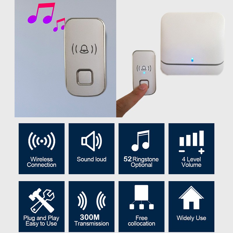Waterproof Wireless Doorbell 300m Range Smart Home Door Bell Malaysia Plug For Home And Office And Hospital