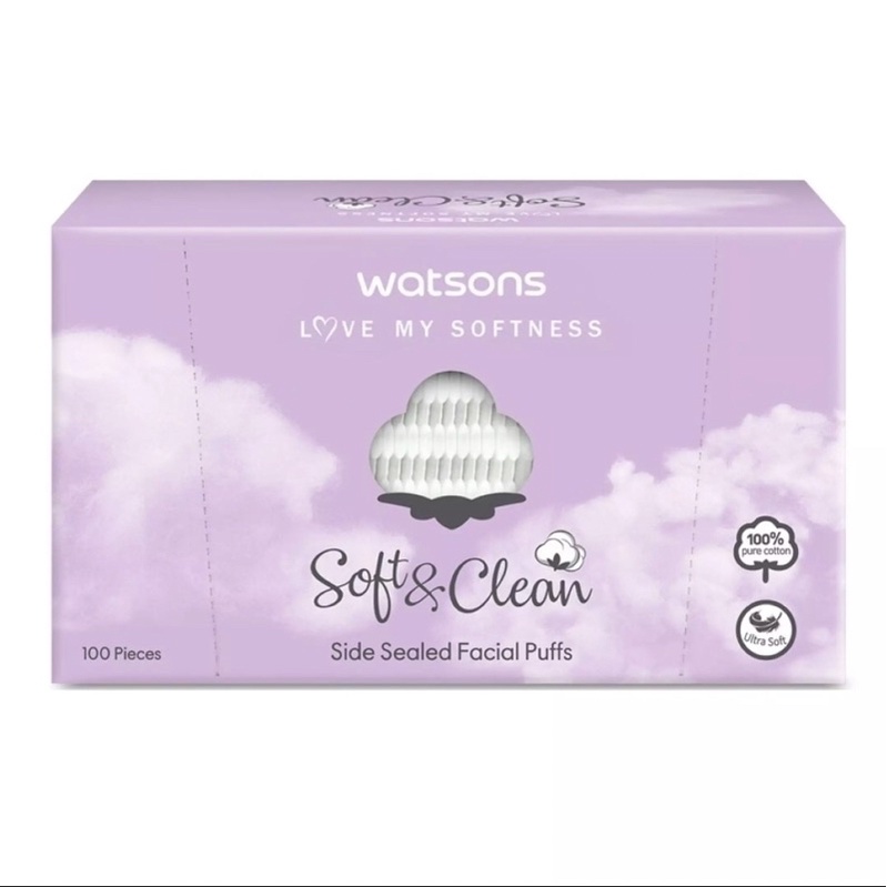 Watsons Soft & Clean Side Sealed Facial Puffs ( 100 Pieces )