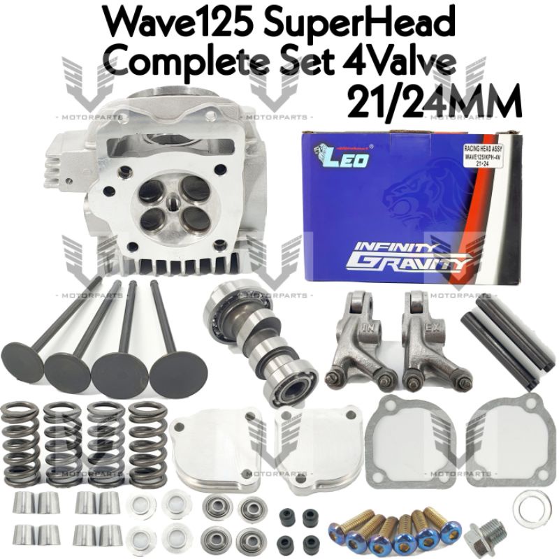 Wave125/W125 Racing Super Head 4 Valve 21/24MM Complete Set Wave 125 Superhead Racing Head Block Set Assy Leo Thailand