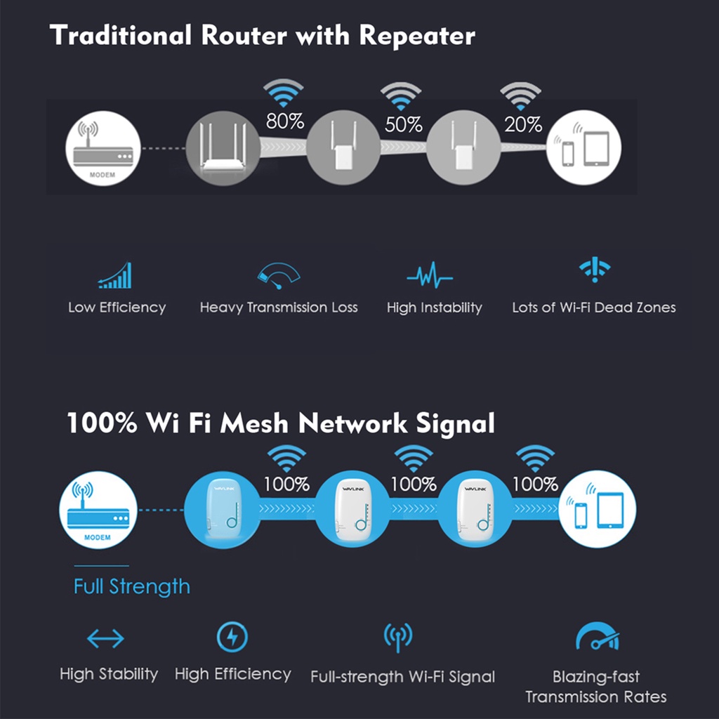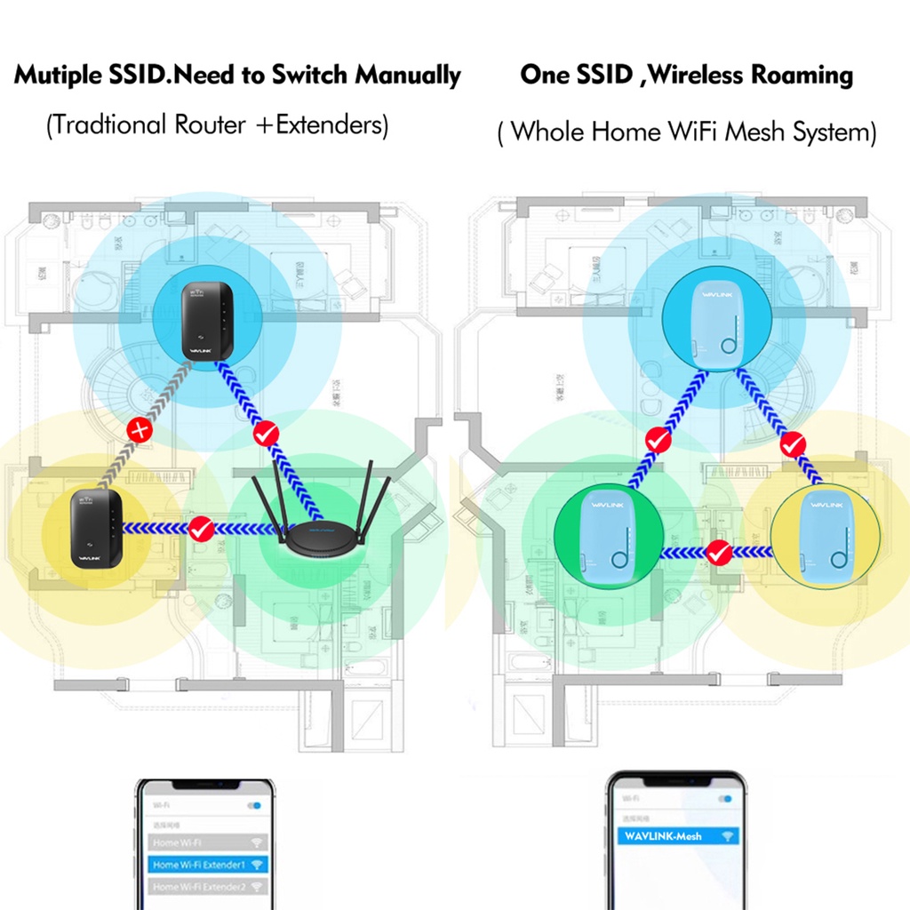 Wavlink AC1200 Dual-band Whole Home Mesh WiFi System with Touchlink