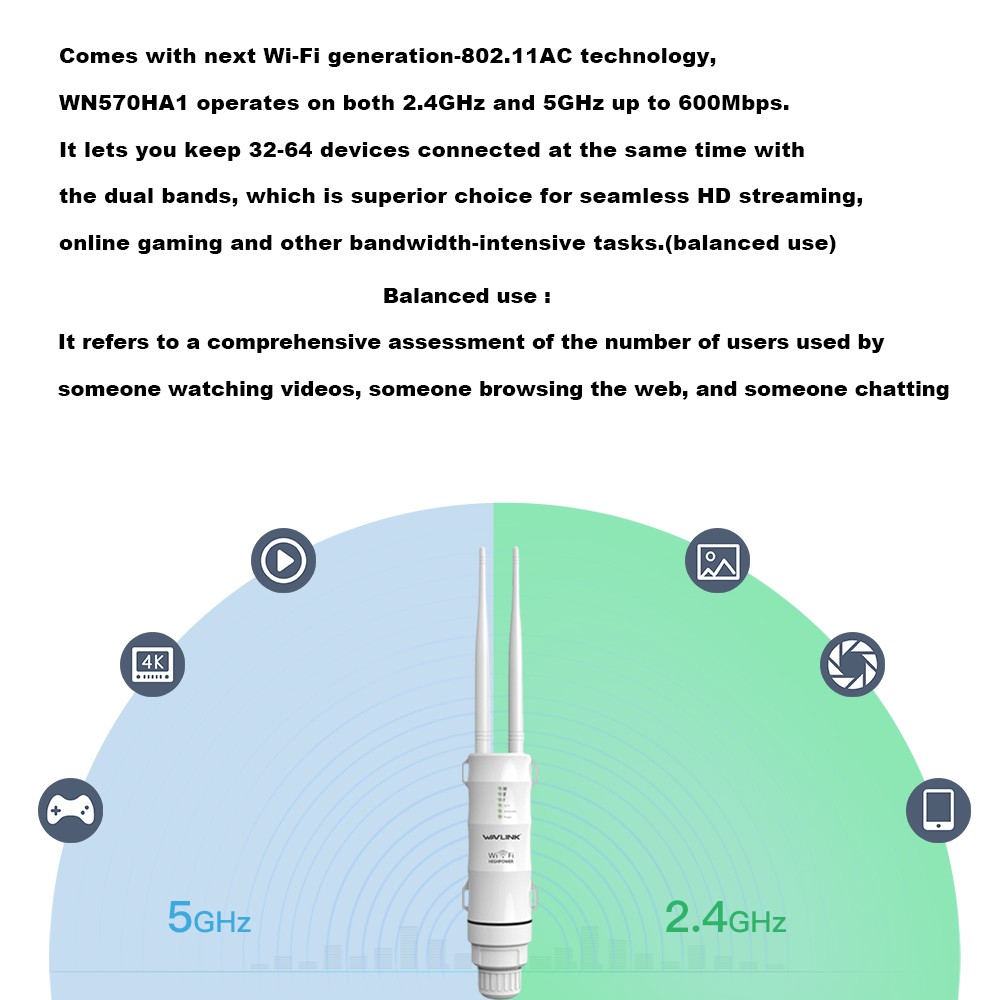 Wavlink AC600 1000mW High Power Outdoor Omni-directional Access Point/CPE/Repeater/WISP 2.4GHz 150Mbps + 5GHz 433Mbps