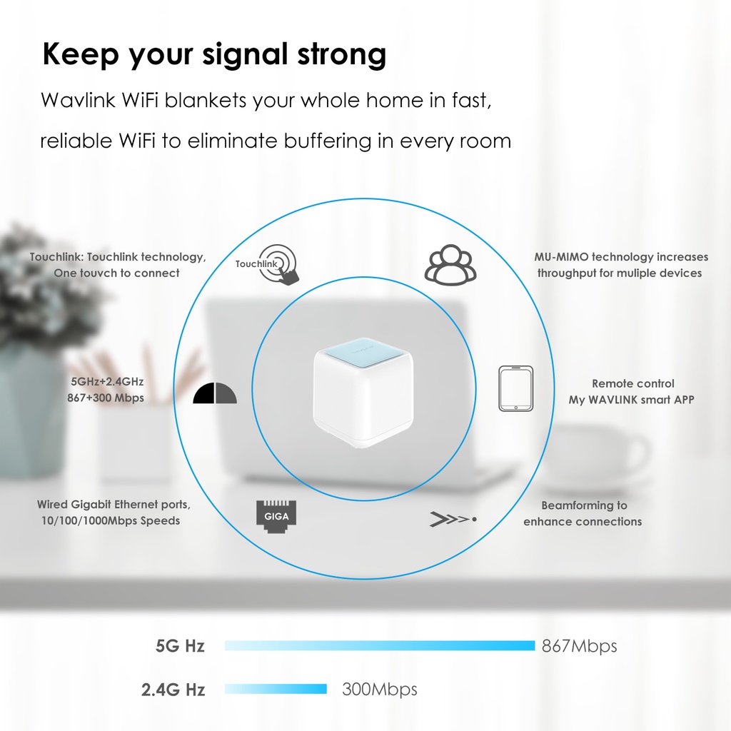 Wavlink Mesh WiFi router System, AC1200 Wireless Access Point,Dual-Band, Full Gigabit, MU-MIMO,Wave 2 touchlink