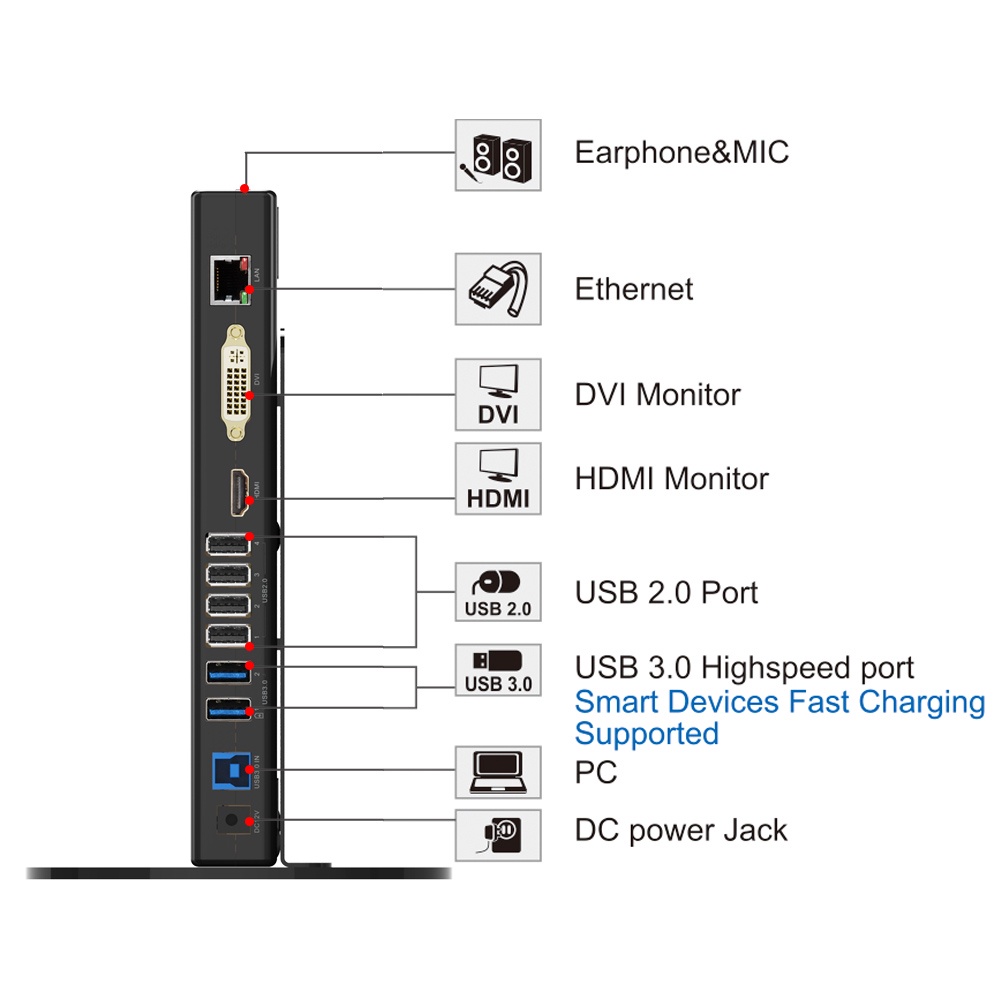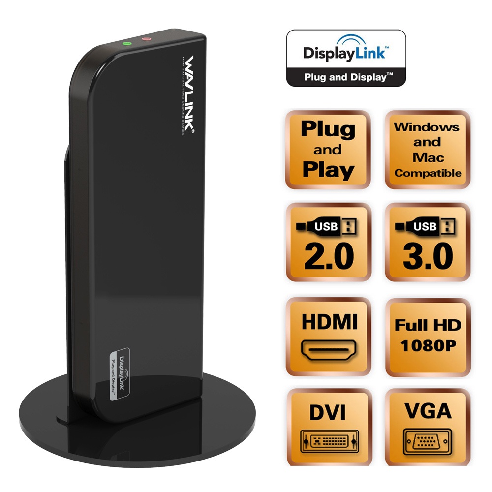 Wavlink Universal Docking Station USB 3.0 HUB with Displaylink 2K Dual 1080P HD Video Monitor Supports DVI/HDMI/VGA Gigabit Ether for Laptop/Desktop