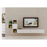 WeHome L Shape Wall Mounted TV Cabinet & 4 Cubes Storage Shelves Full Set (White)