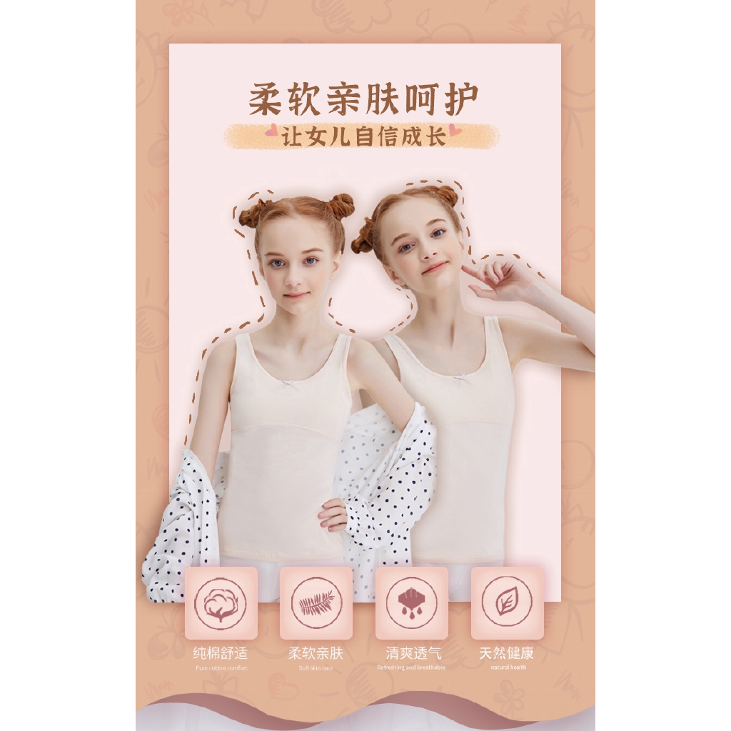 Wear cotton sleeveless vest girls tops girl in the development of anti-bump-year-old underwear sports vest pupils