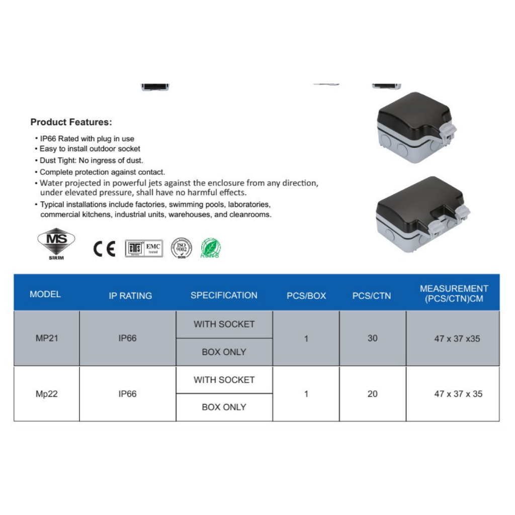 Weatherproof Cover Single outdoor socket /Double outdoor socket waterproof Cover IP66 with 13a switch socket