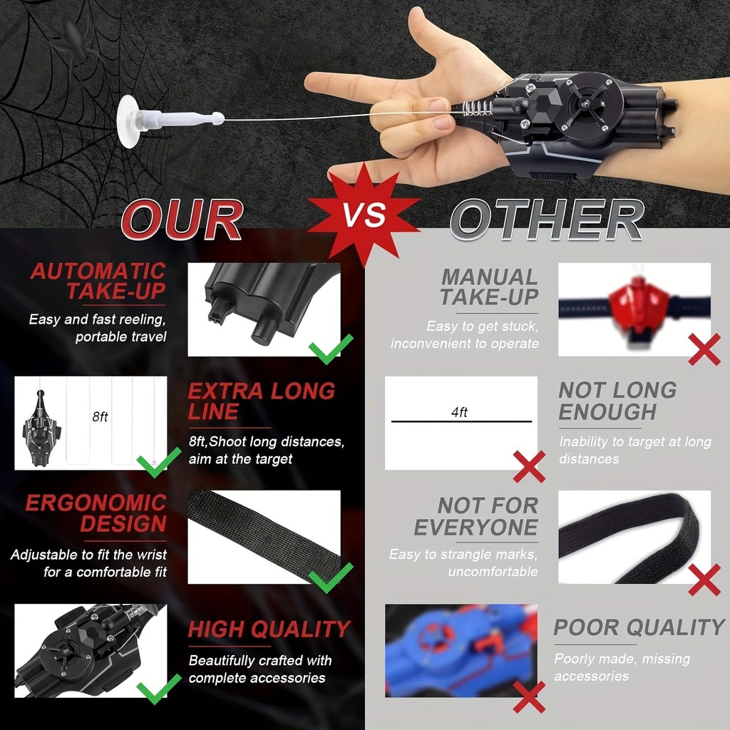 Web Shooter, Real Rope Launcher-Can Grab Small Objects, USB-Charging Launcher Wrist Strap Accessory for Cosplay, Spider Web Shooters for Kids