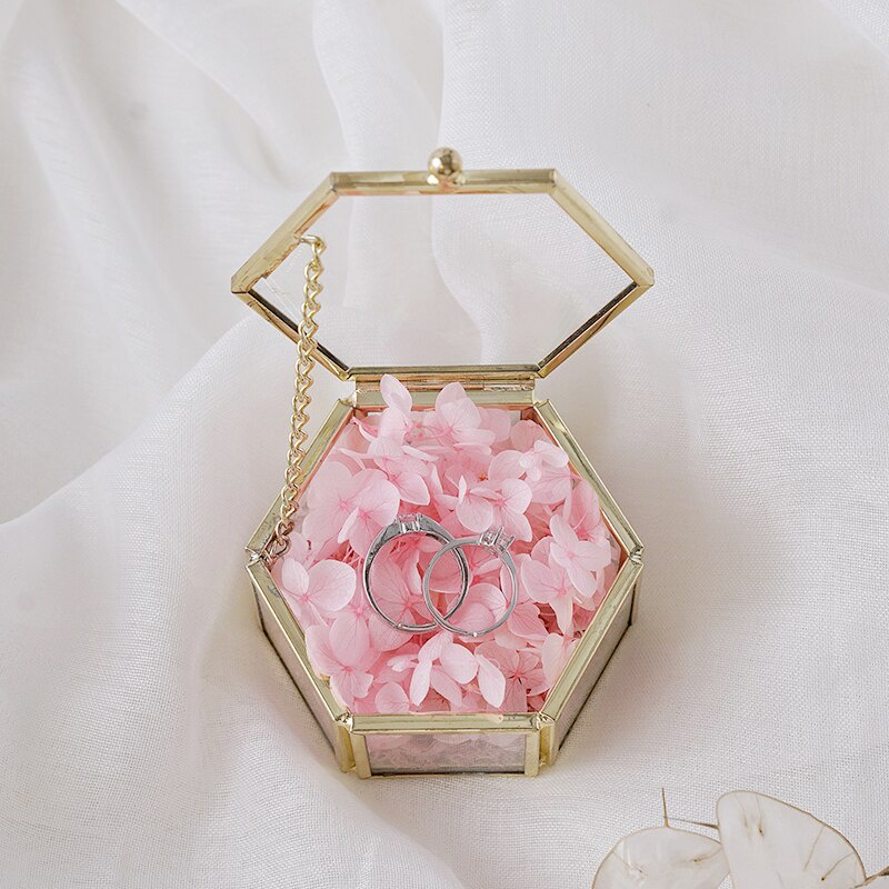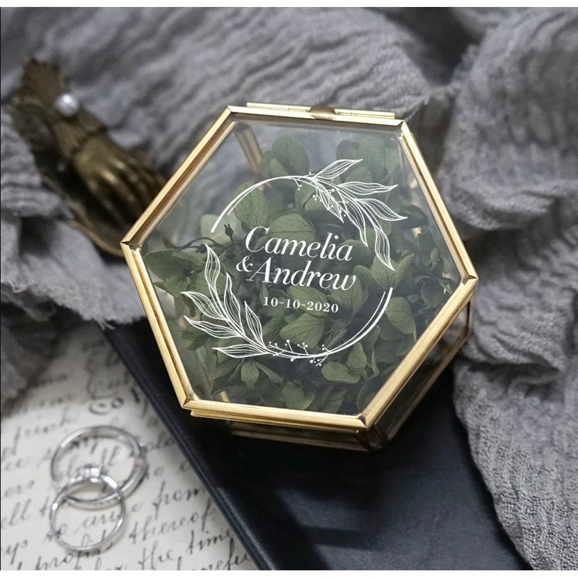 Wedding Glass Box [Engrave] Custom Made Wedding Ring Box Hexagon Glass Box Engagement Jewelry Box Personalized