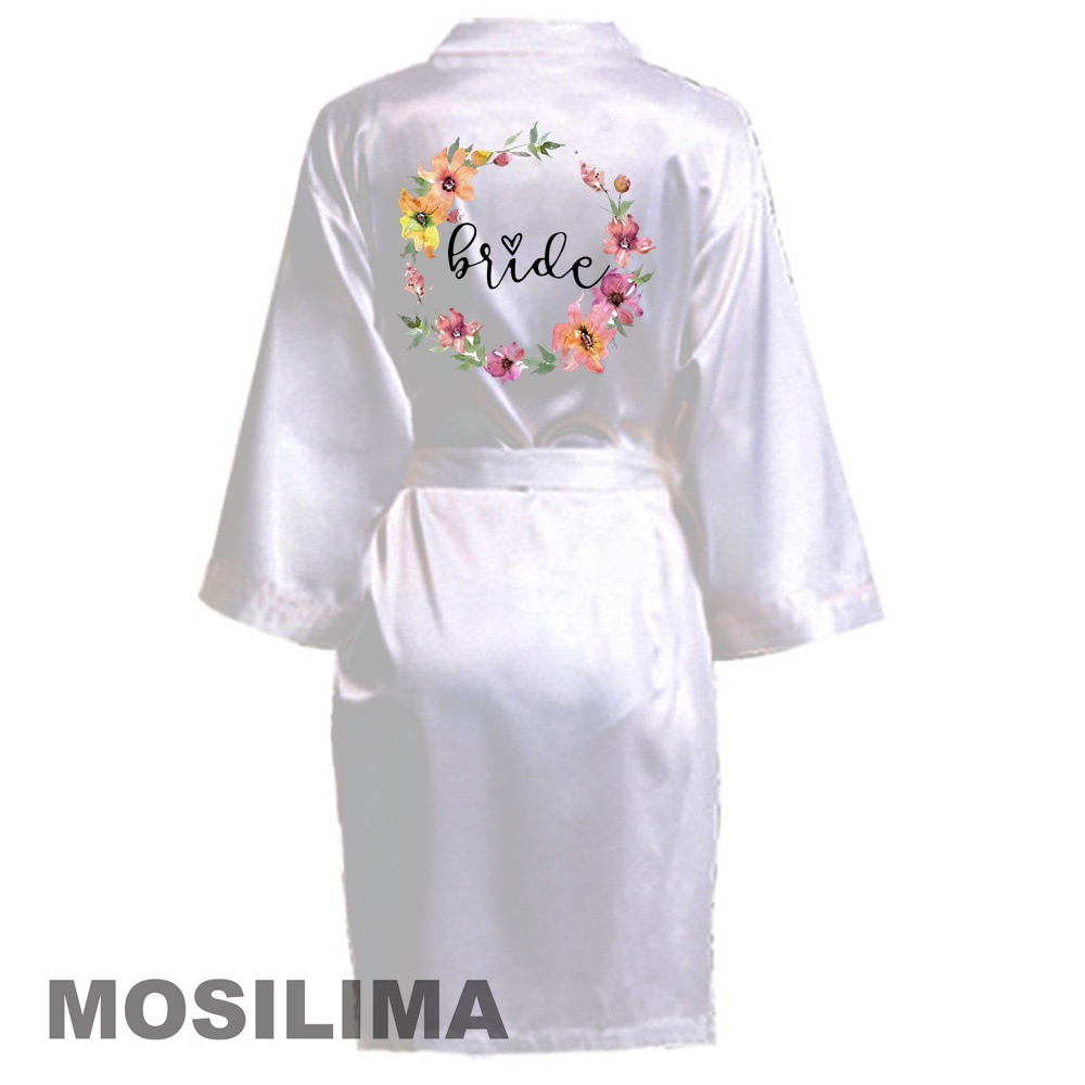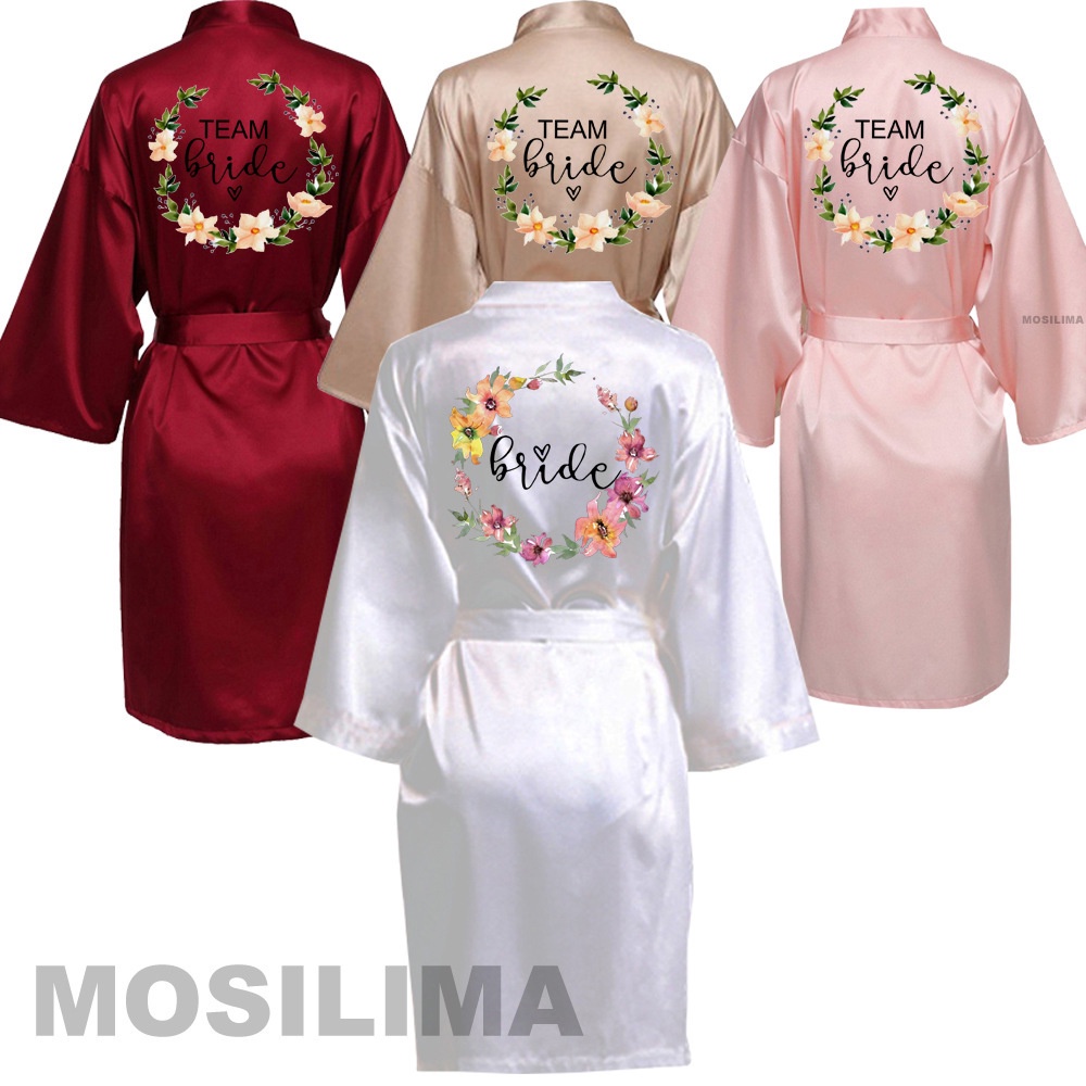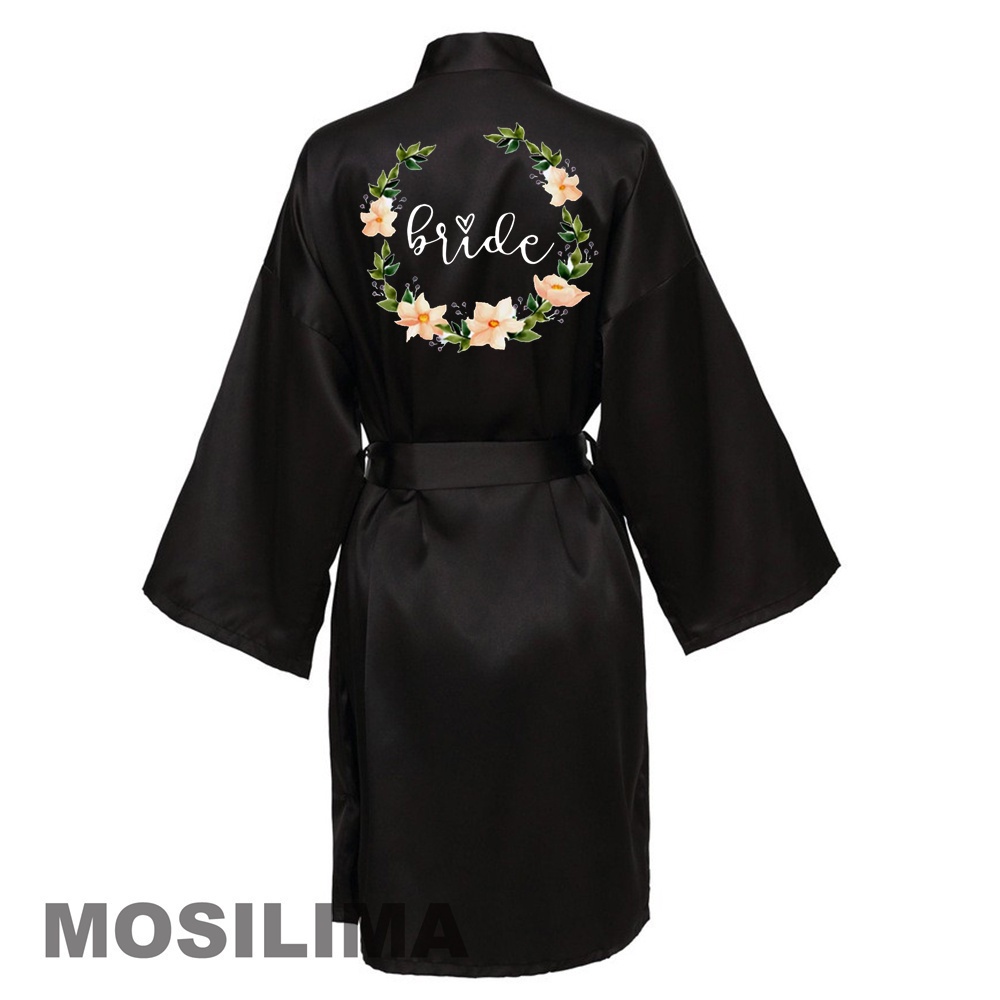 Wedding Party Team Bride Robe With Black Letters Kimono Satin Pajamas Bridesmaid Bathrobe 4QMQ