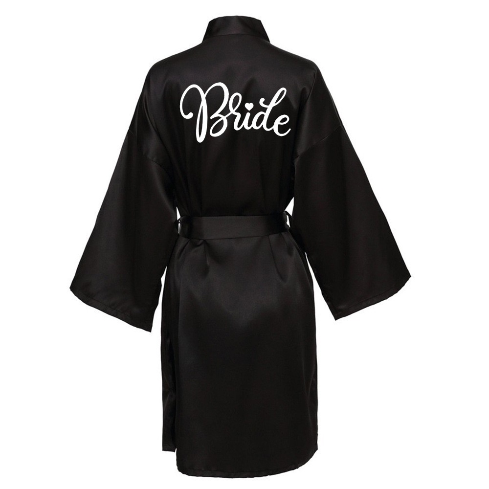 Wedding Party Team Bride Robe With Black Letters Kimono Satin Pajamas Bridesmaid Bathrobe SP024