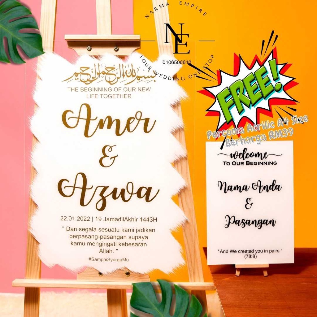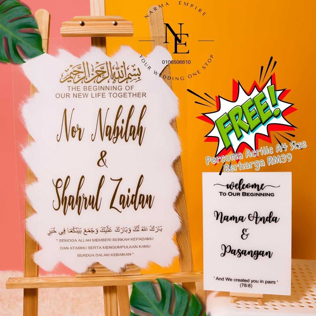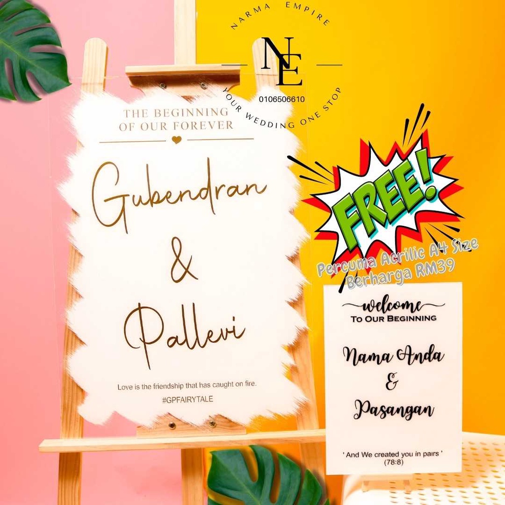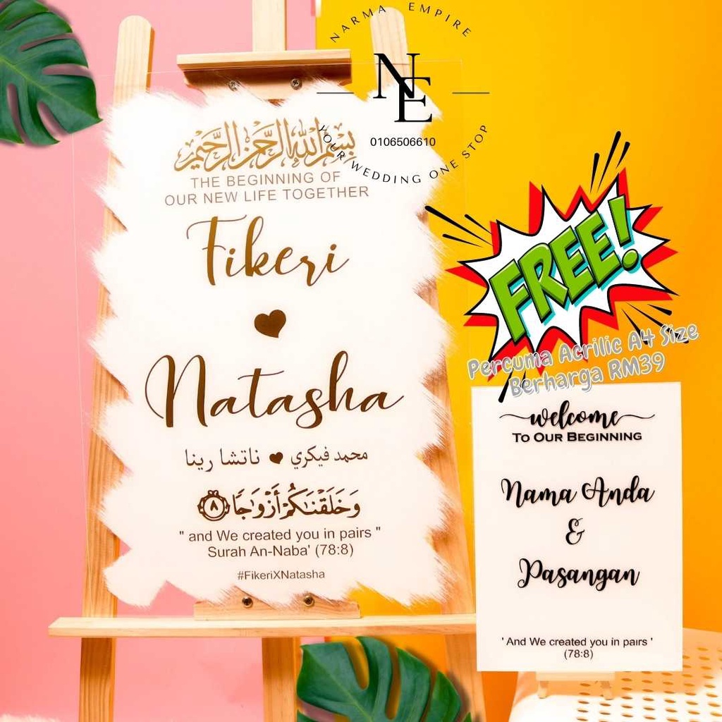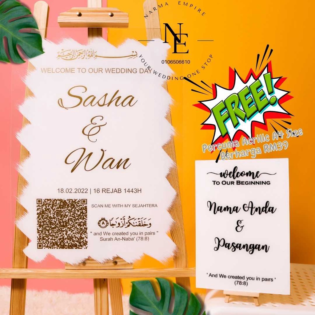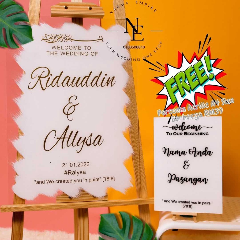 Wedding Welcome Board | Signboard Kahwin | Board Perkahwinan | Acrylic Board Free A4 Size Wedding Board V3
