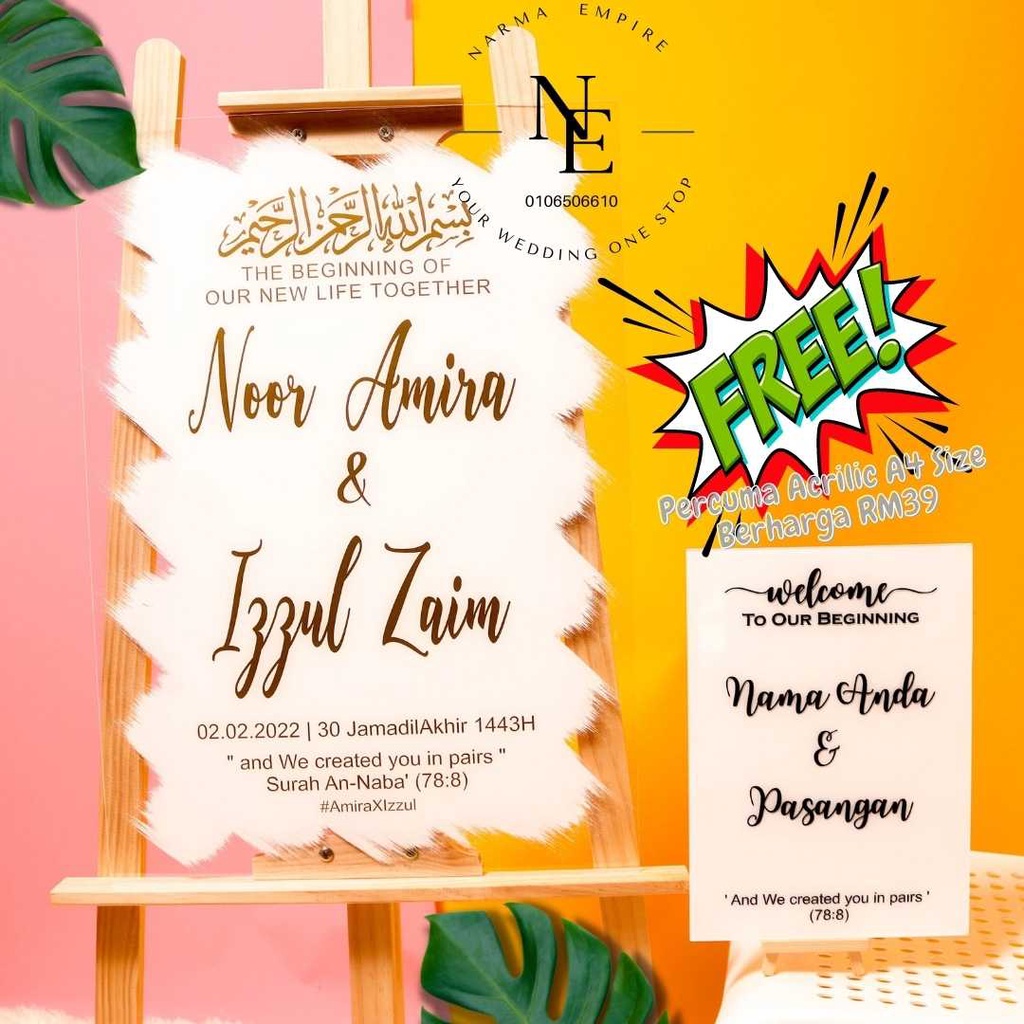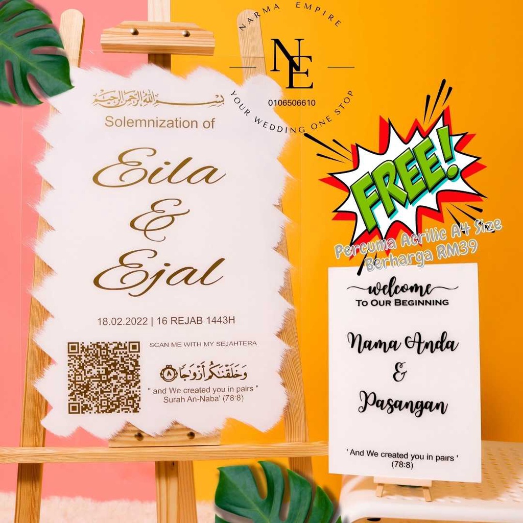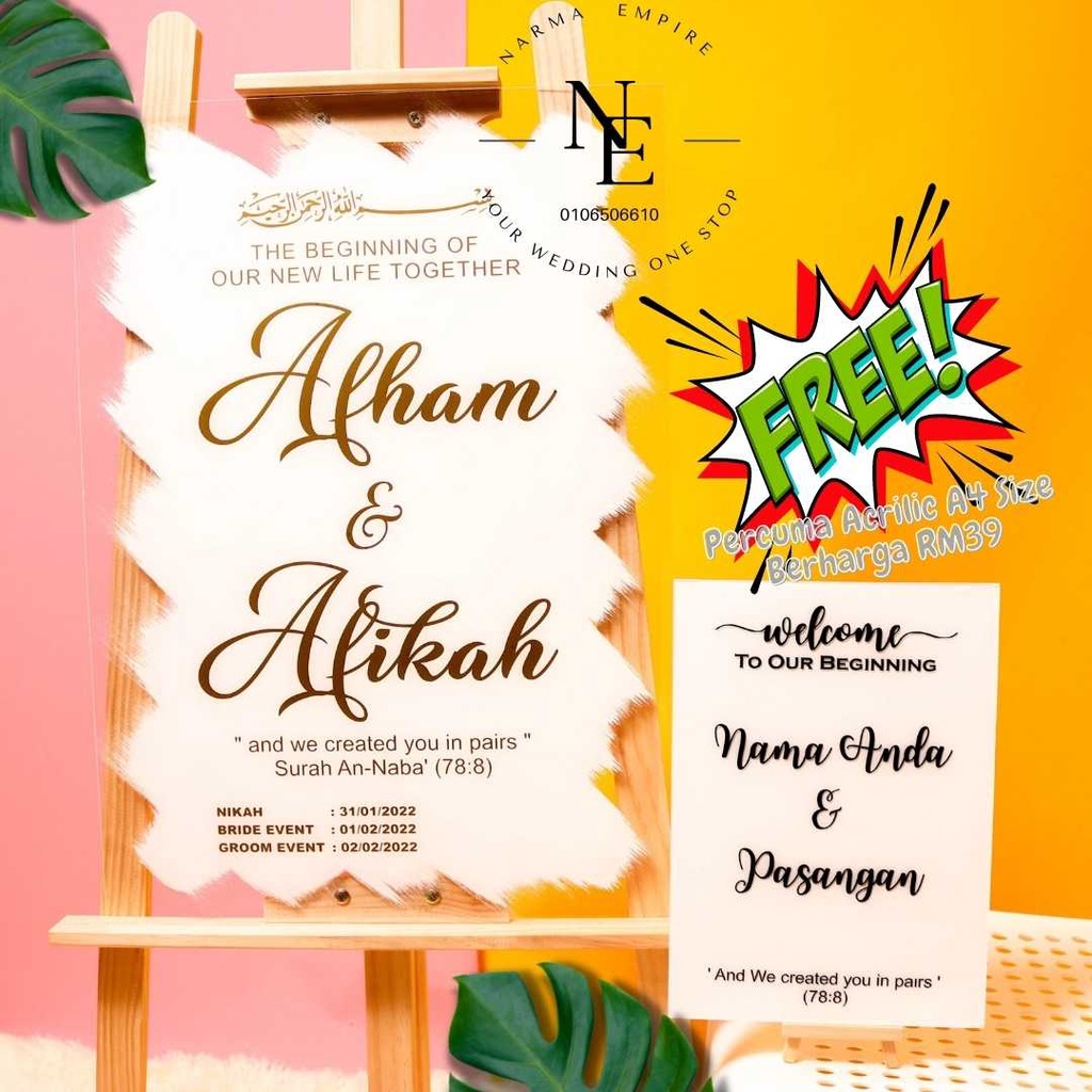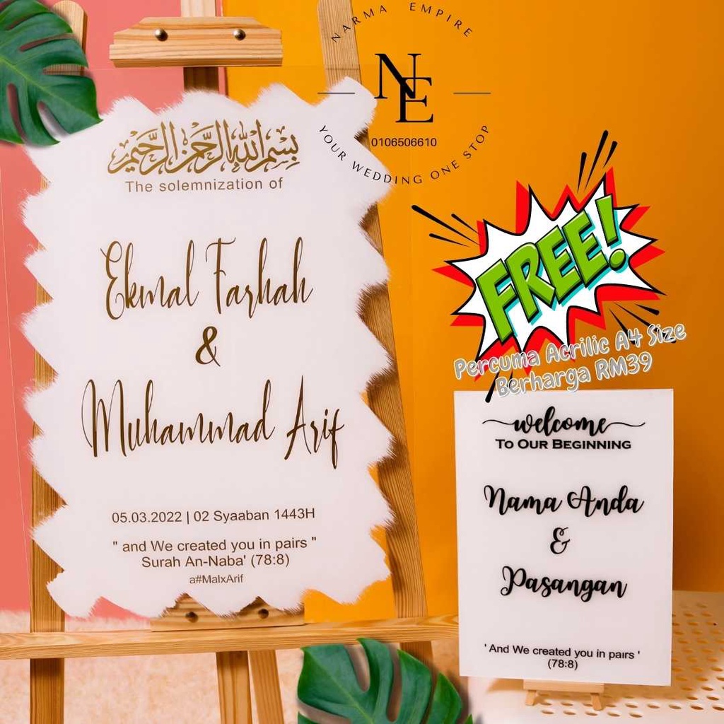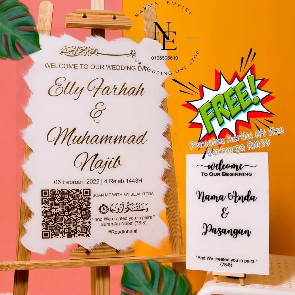 Wedding Welcome Board | Signboard Kahwin | Board Perkahwinan | Acrylic Board Free A4 Size Wedding Board V3