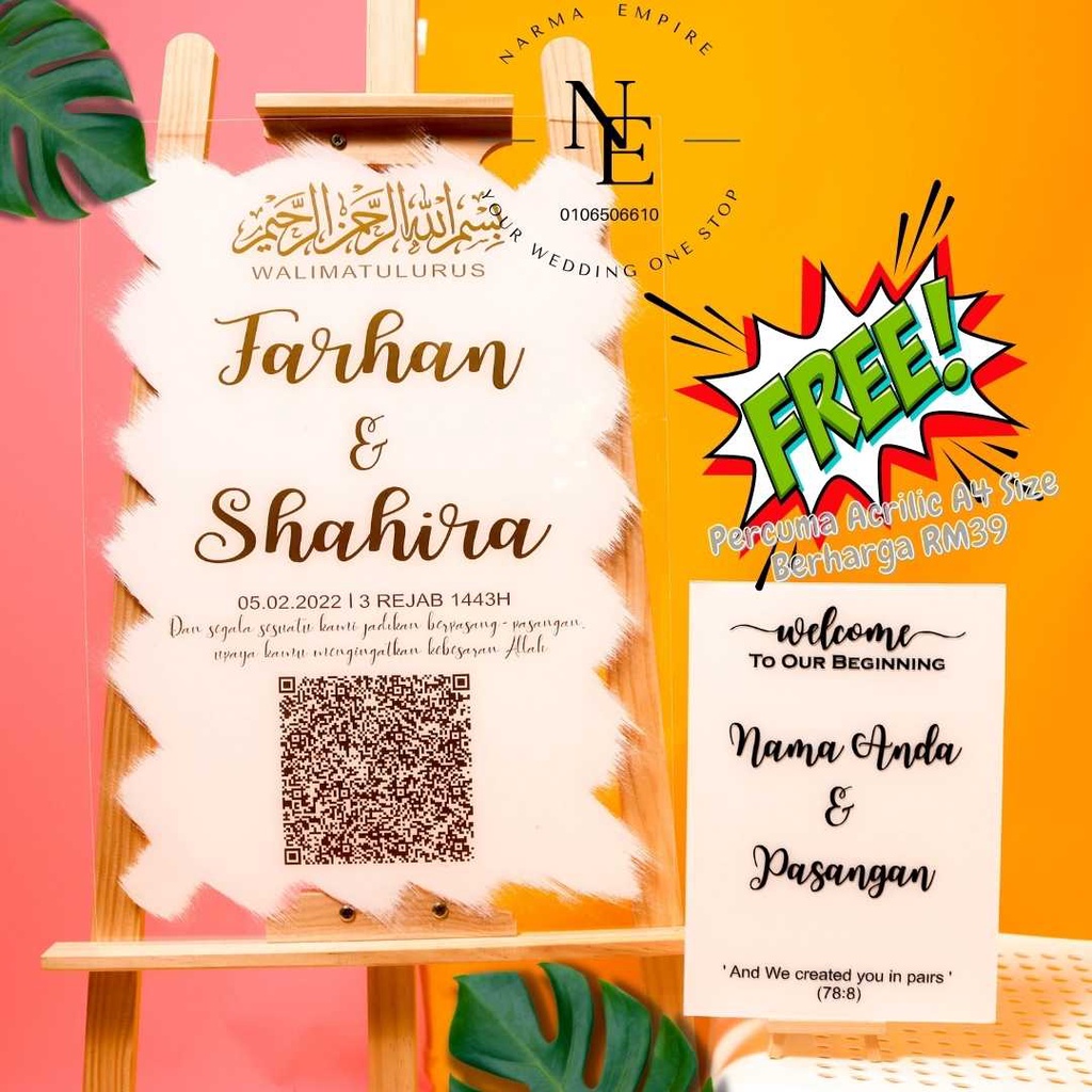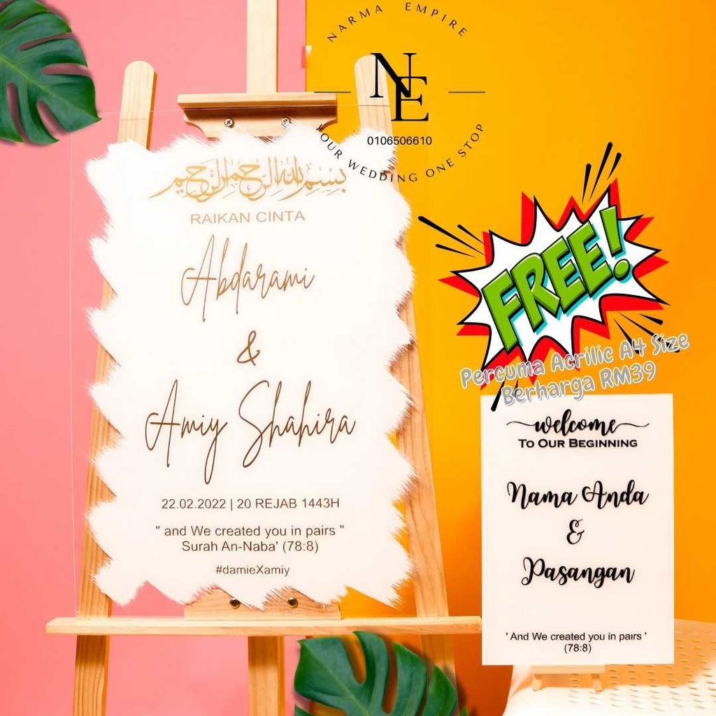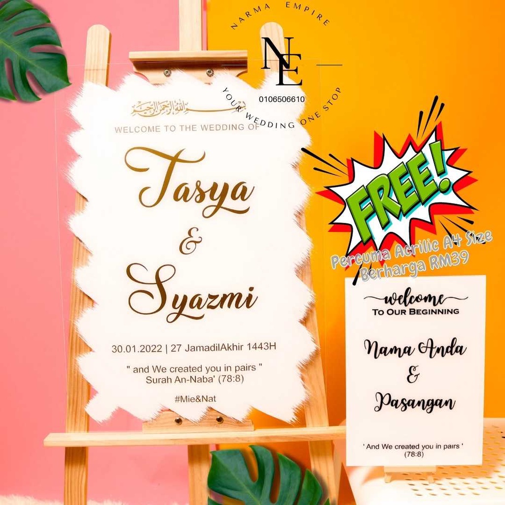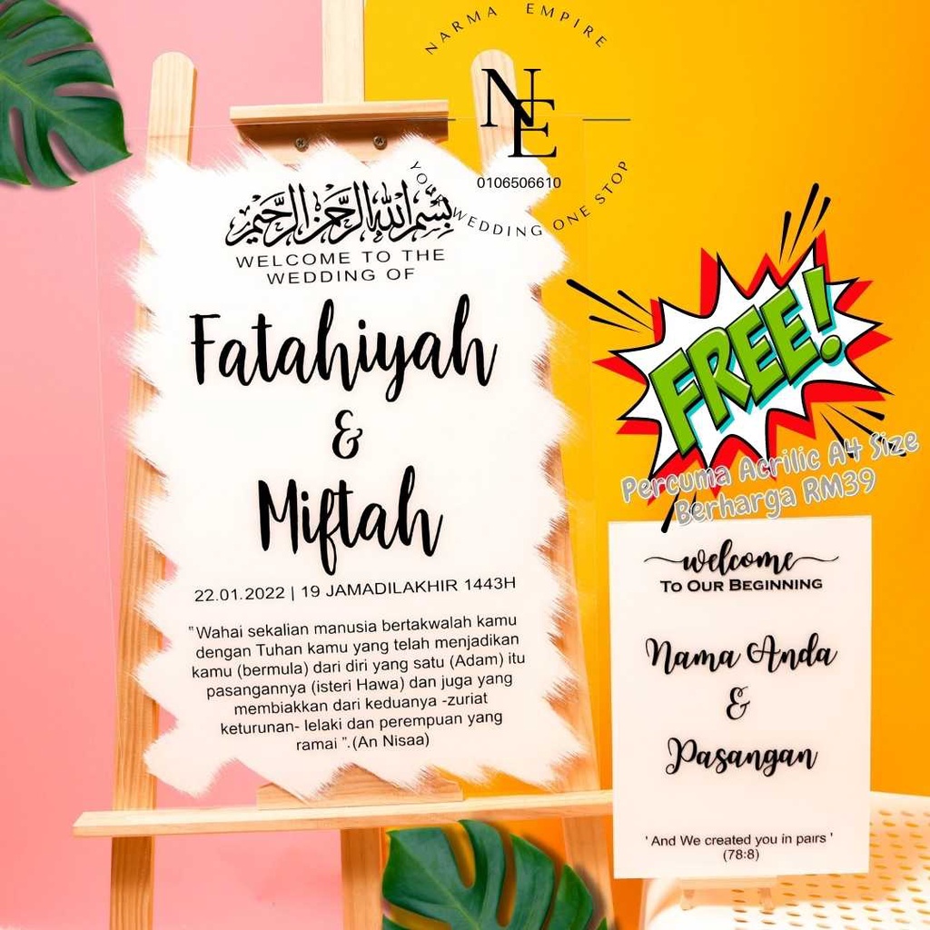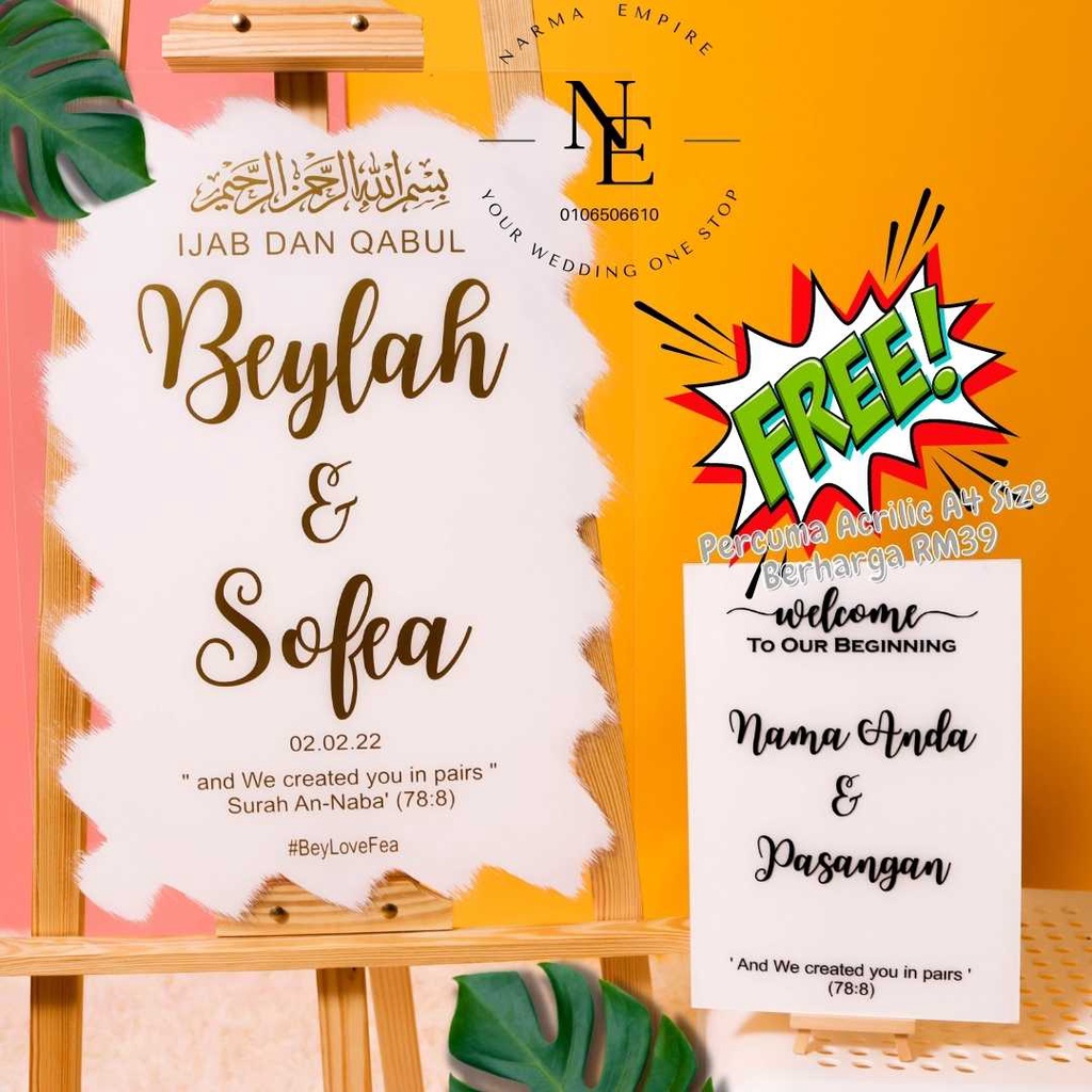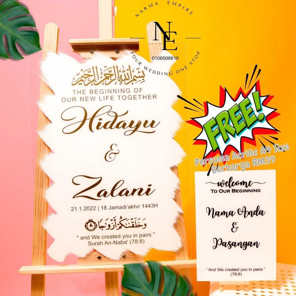 Wedding Welcome Board | Signboard Kahwin | Board Perkahwinan | Acrylic Board Free A4 Size Wedding Board V3