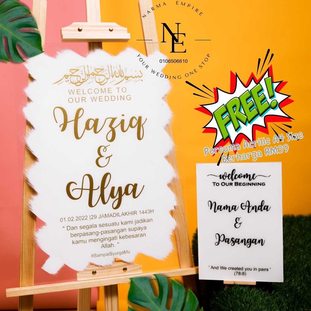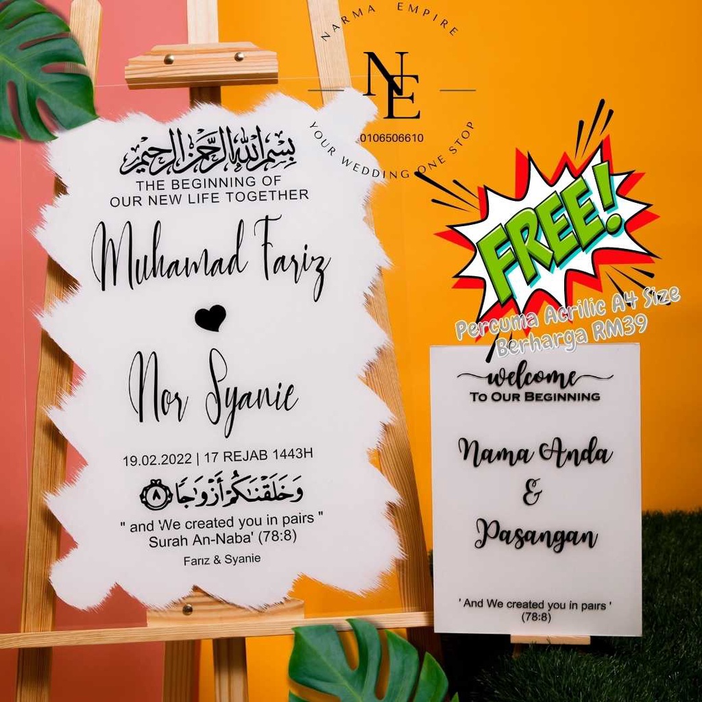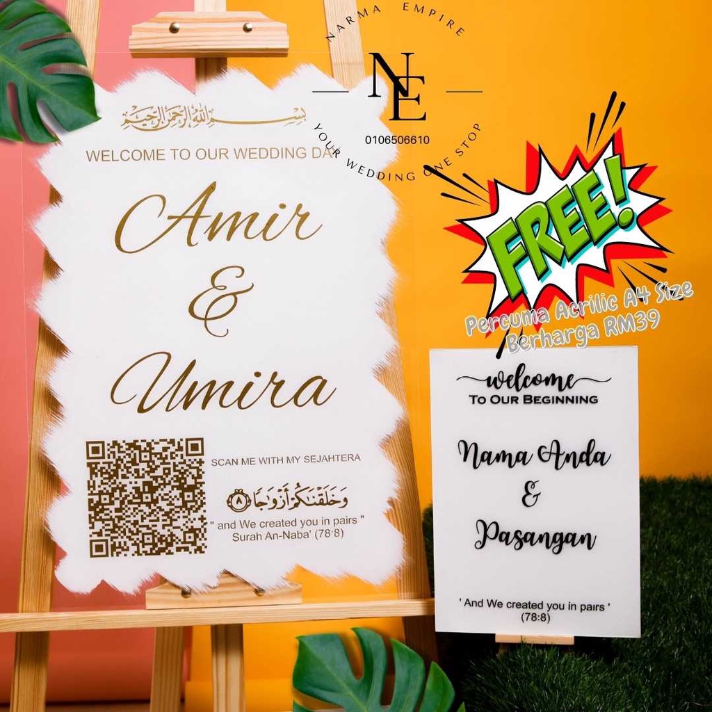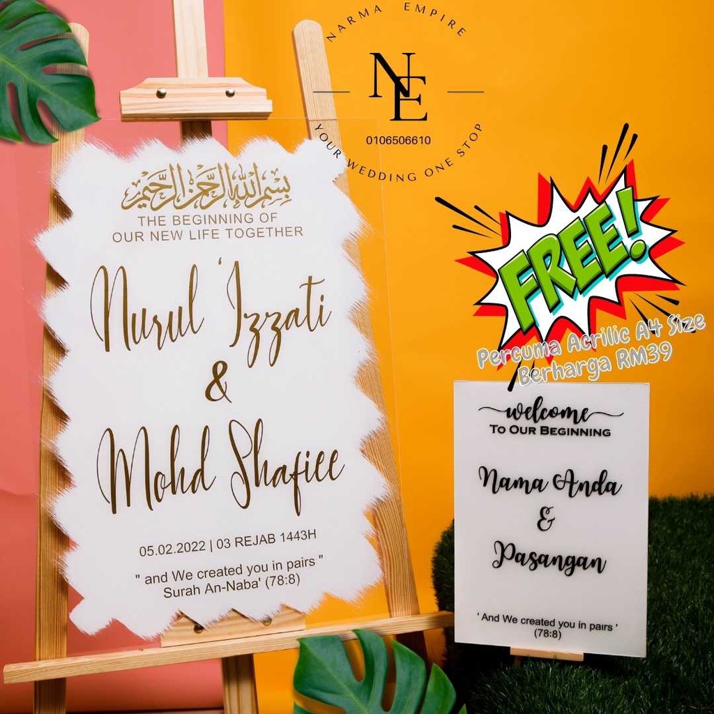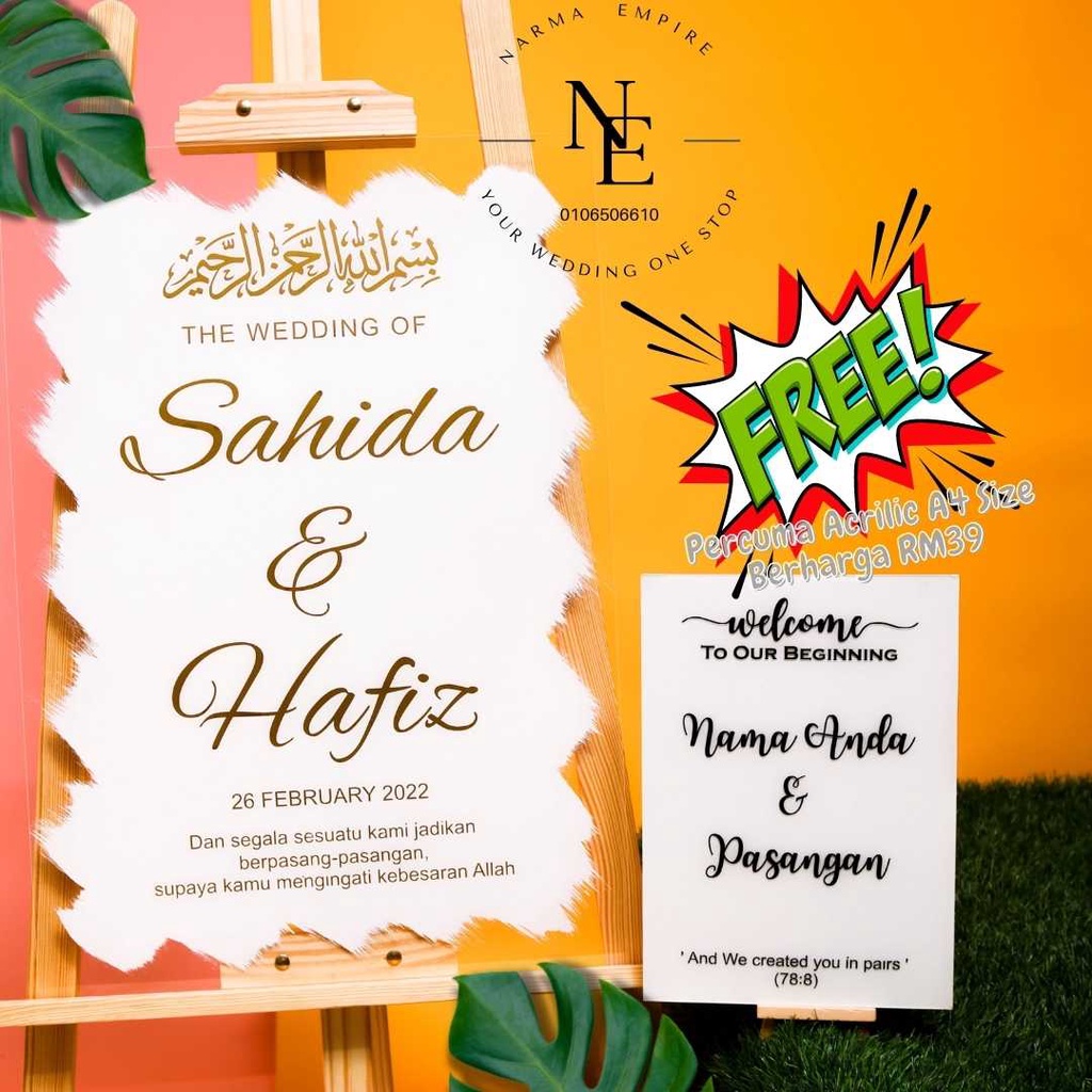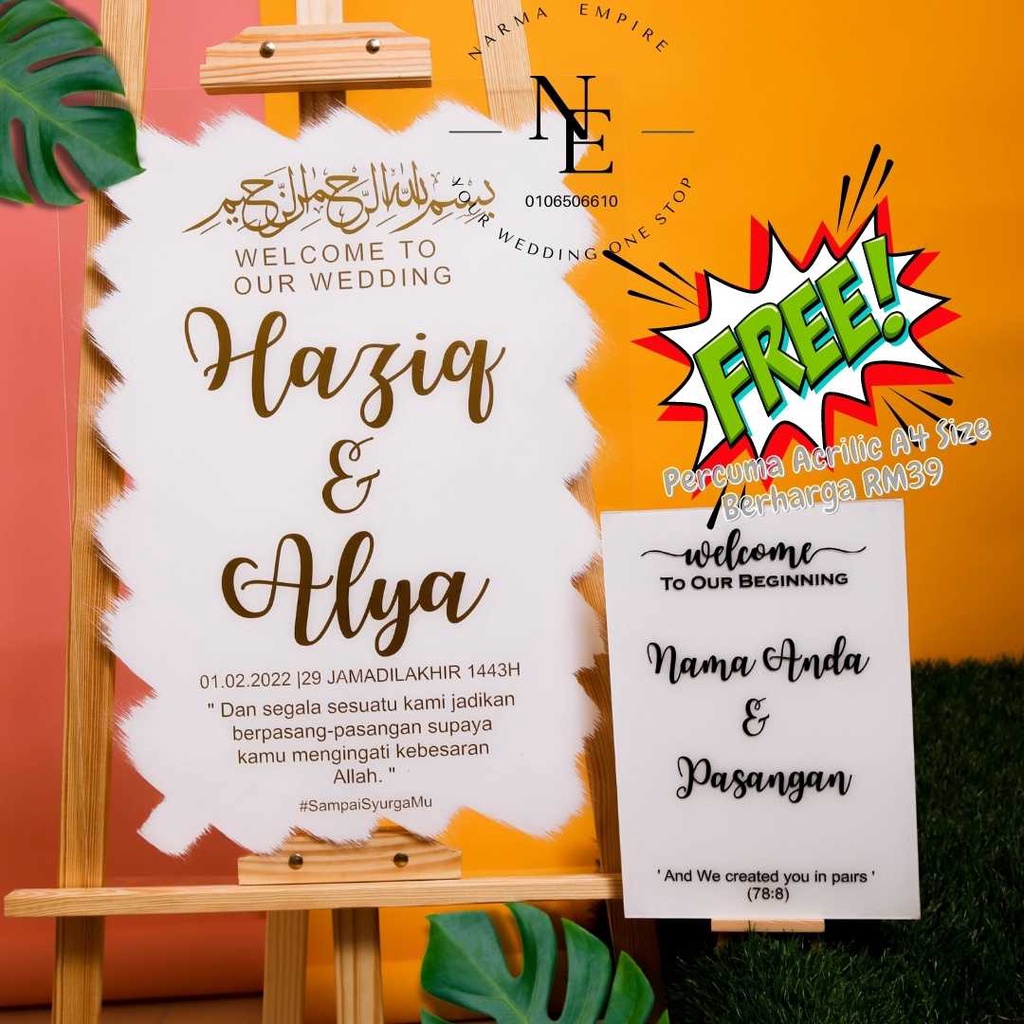 Wedding Welcome Board | Signboard Kahwin | Board Perkahwinan | Acrylic Board Free A4 Size Wedding Board