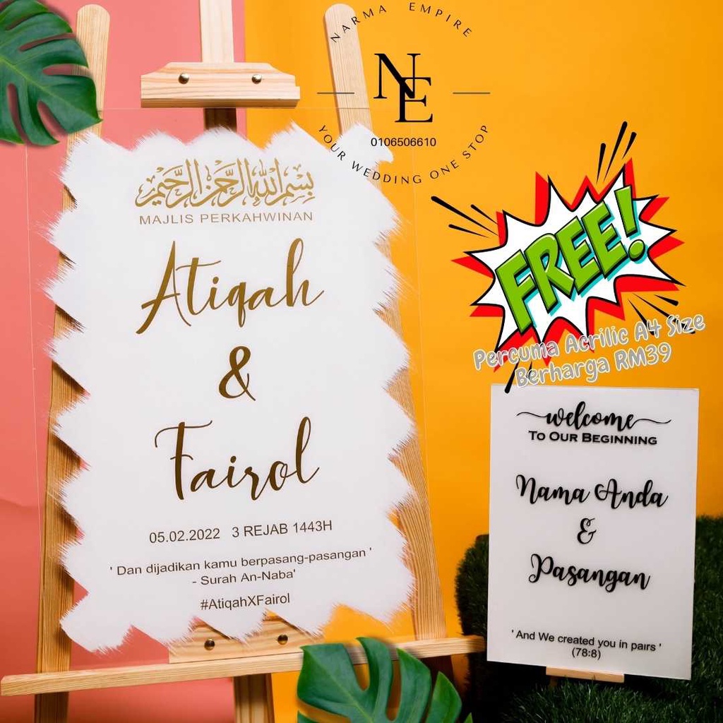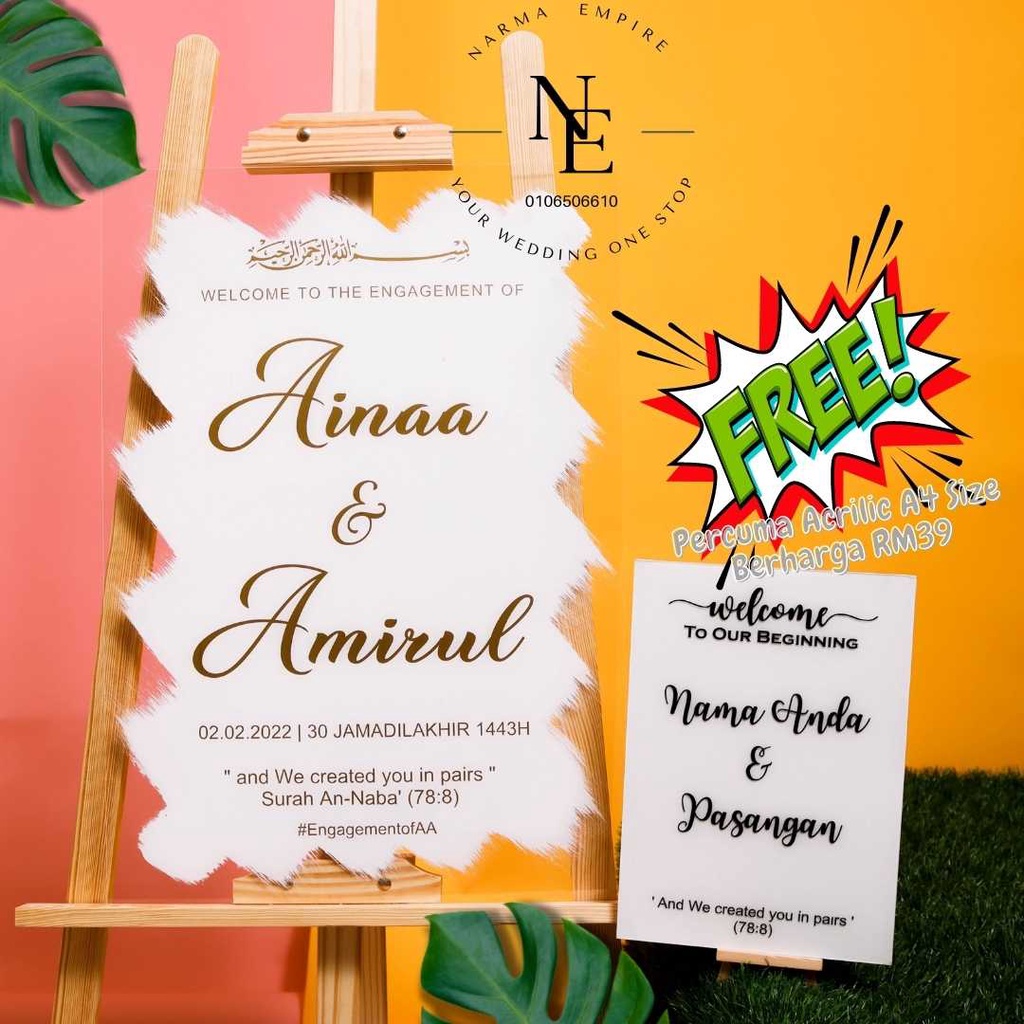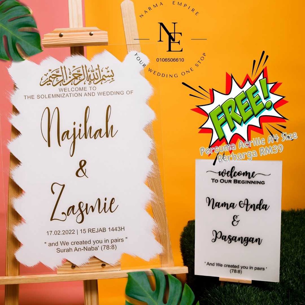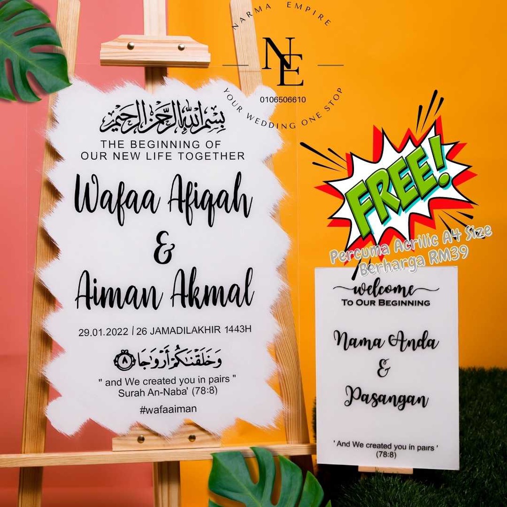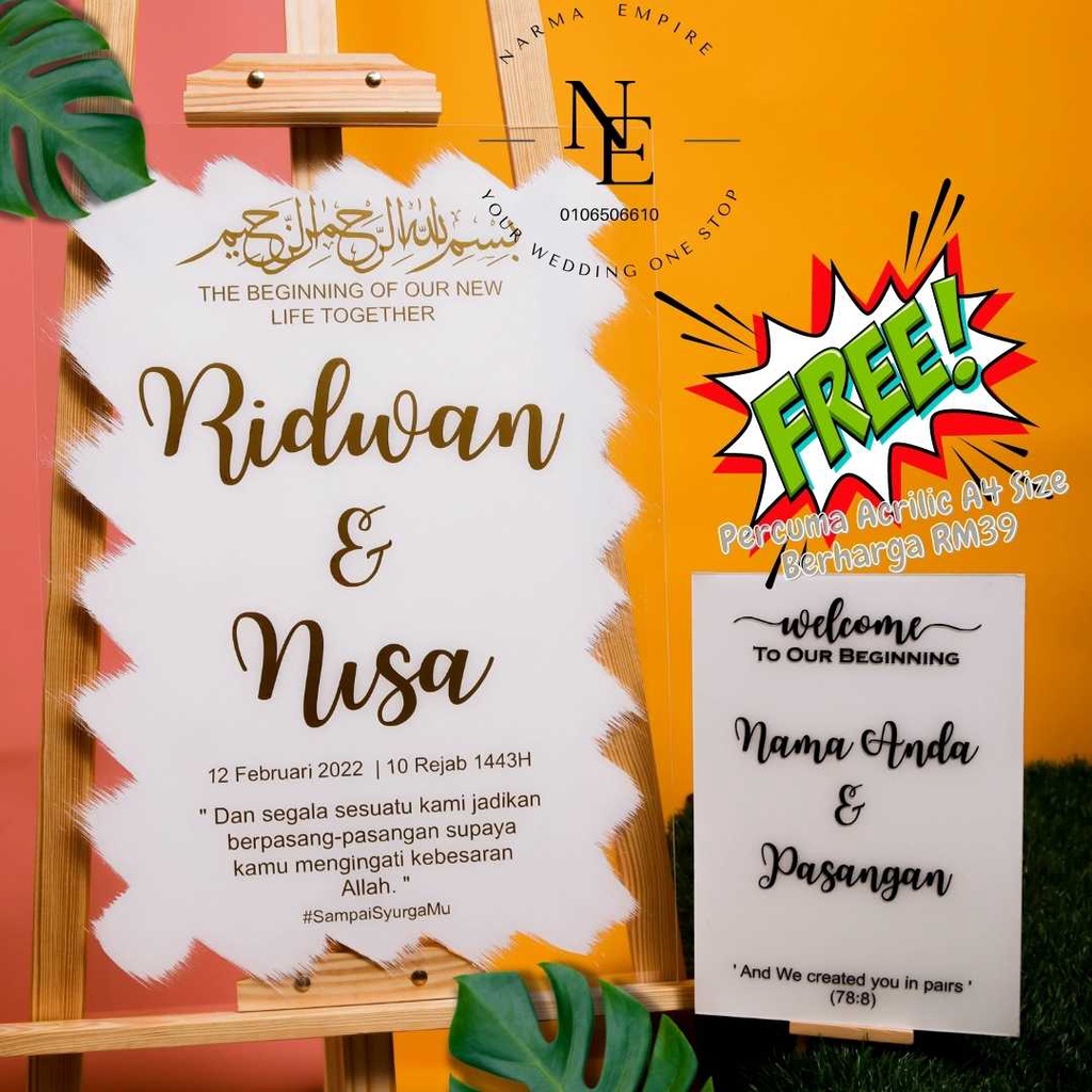 Wedding Welcome Board | Signboard Kahwin | Board Perkahwinan | Acrylic Board Free A4 Size Wedding Board