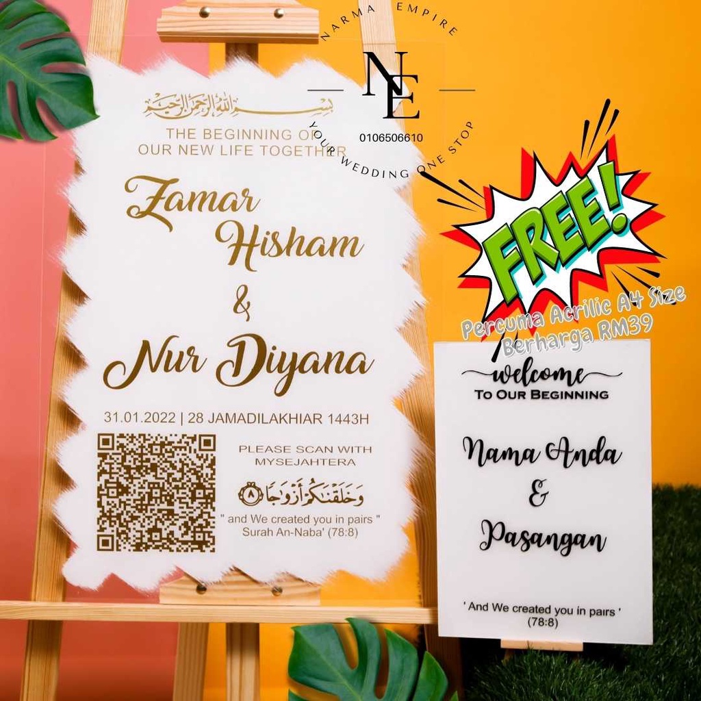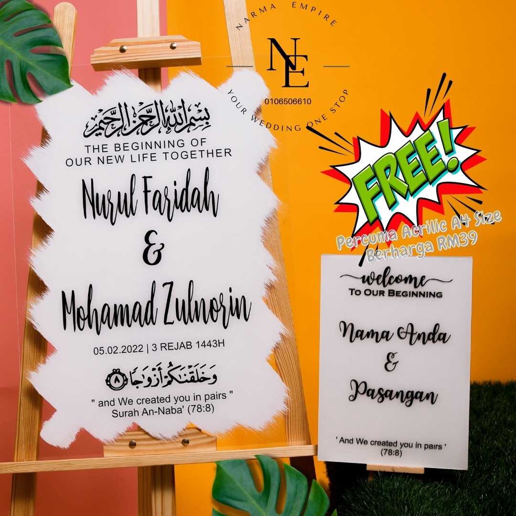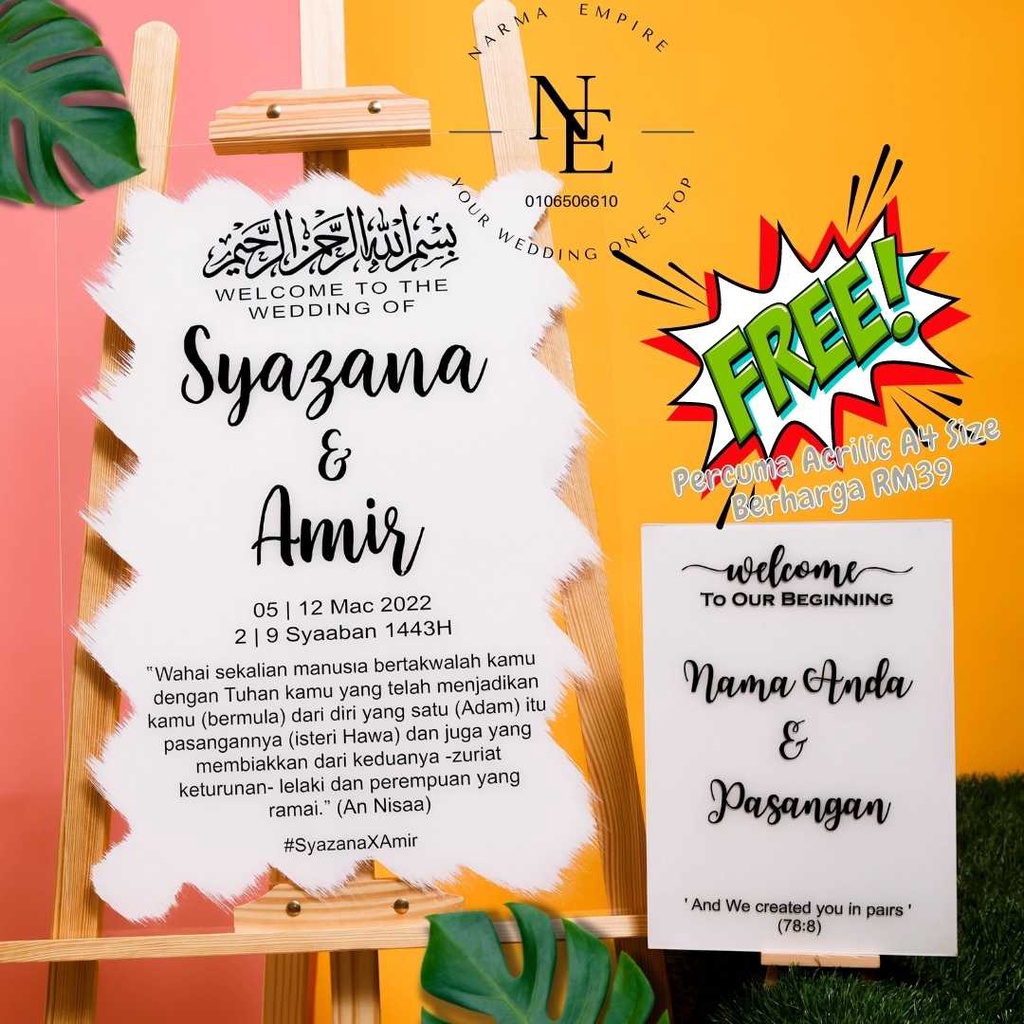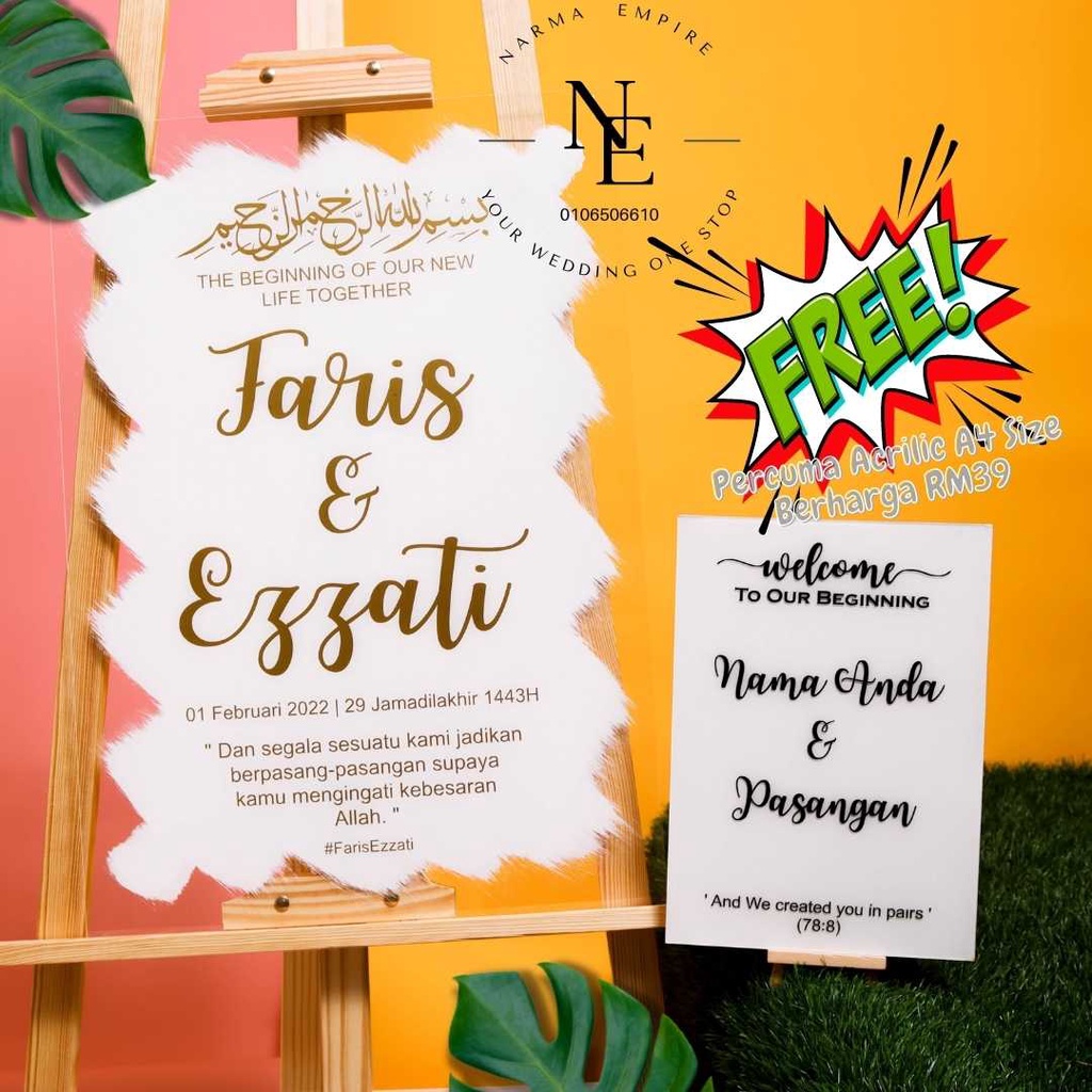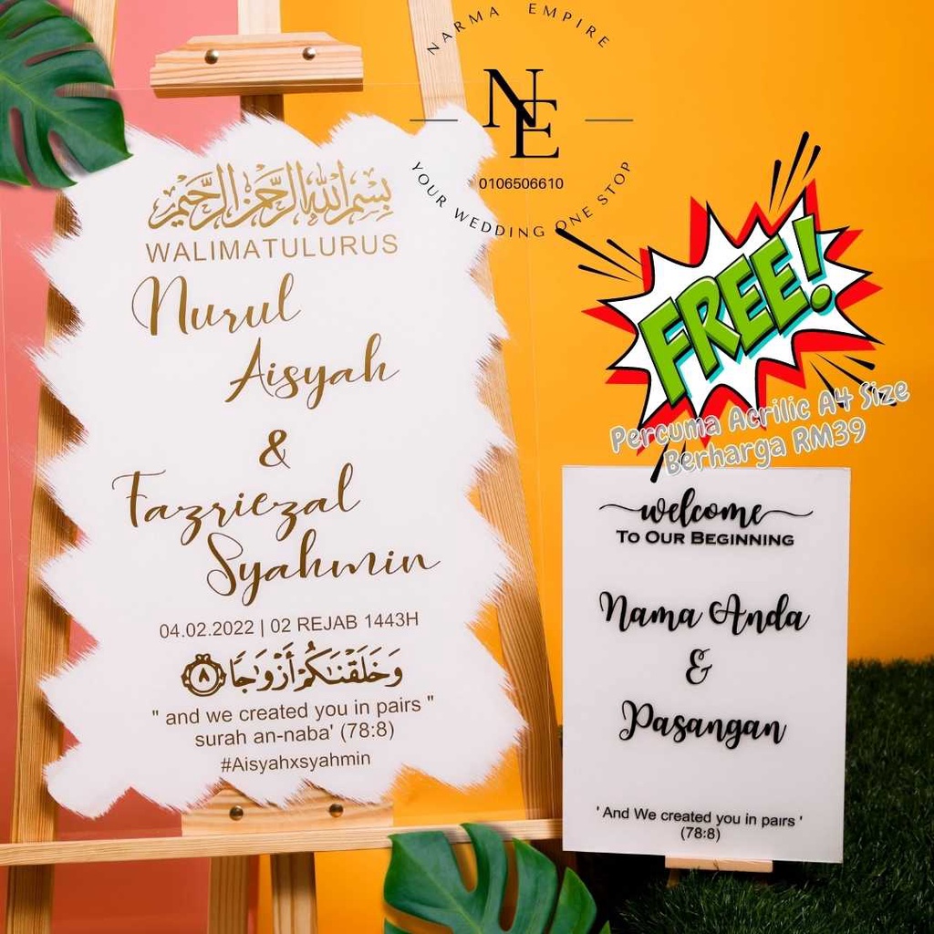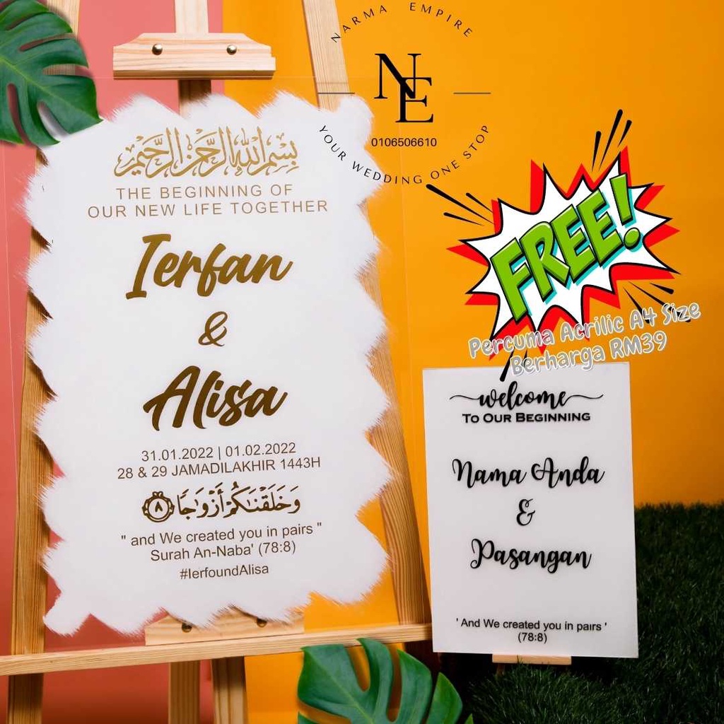 Wedding Welcome Board | Signboard Kahwin | Board Perkahwinan | Acrylic Board Free A4 Size Wedding Board