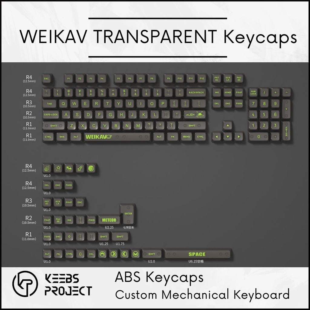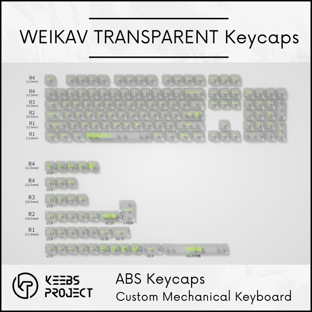 Weikav Transparent Crystal Keycaps Shinethru RGB ABS Keycaps for Mechanical Keyboard