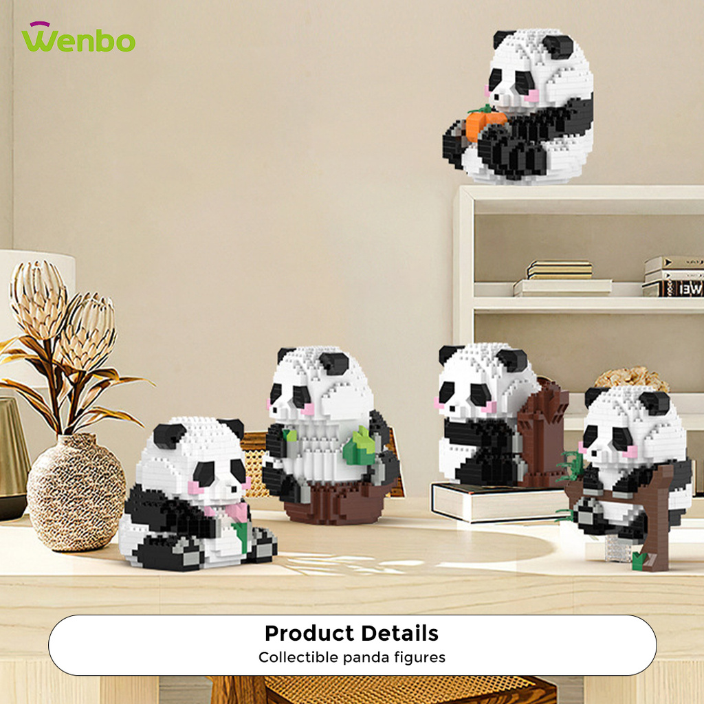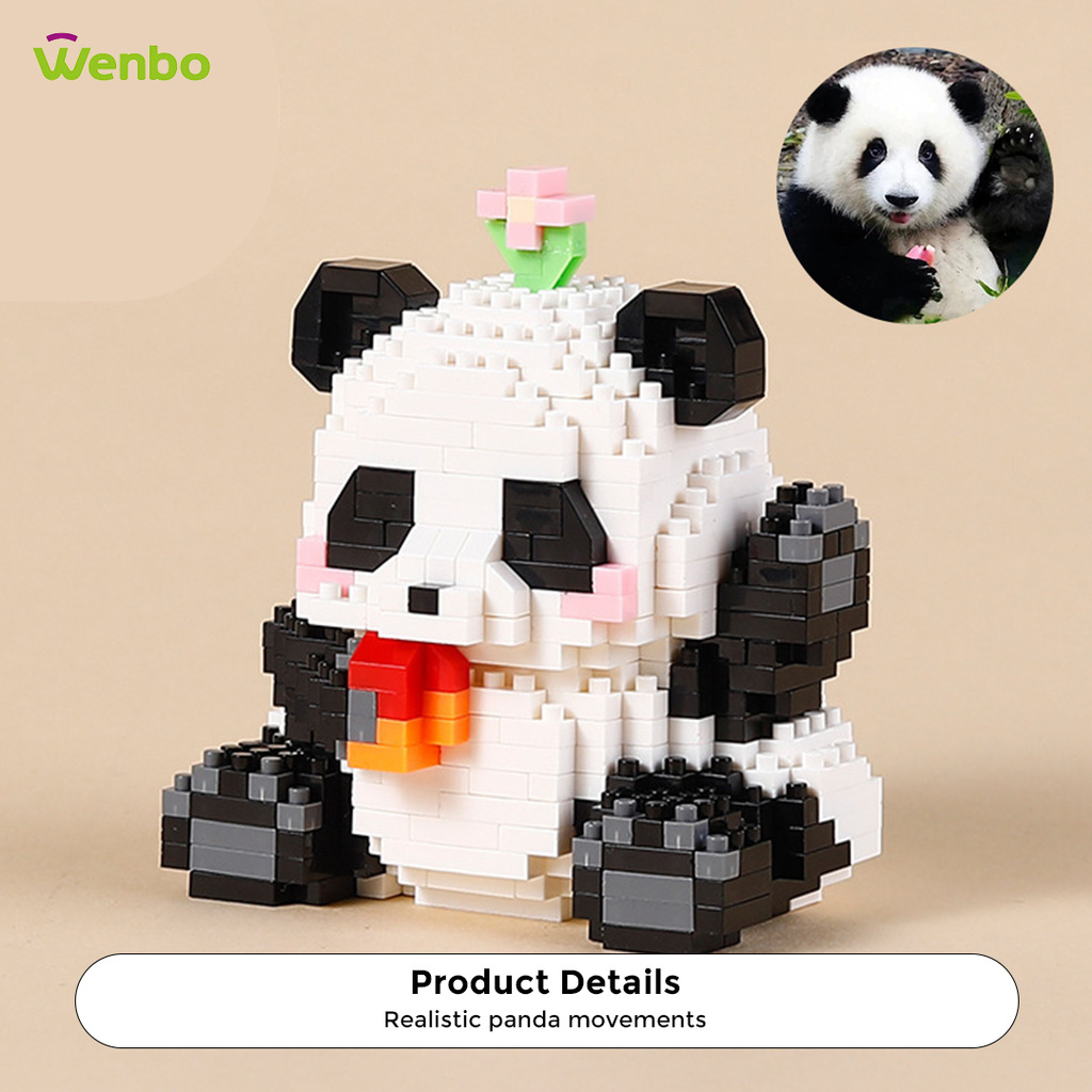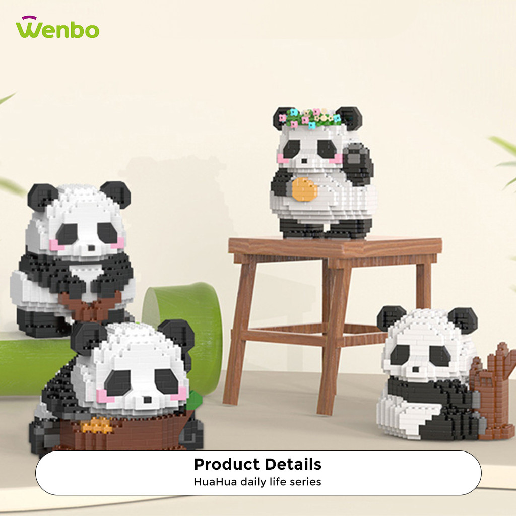 Wenbo Cute Panda Building Block Particle Assembled Blocks Hua Hua Panda Daily Life Model Children Educational Toy