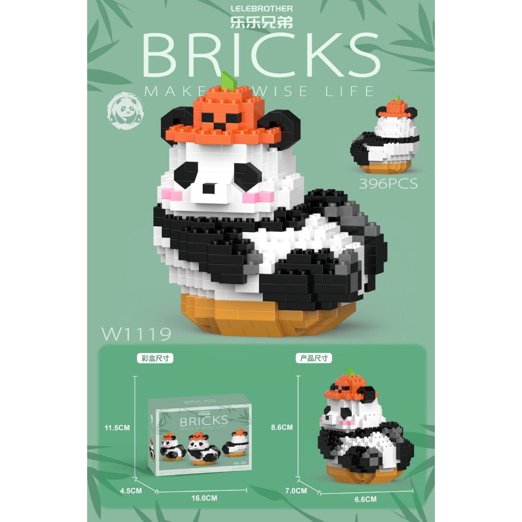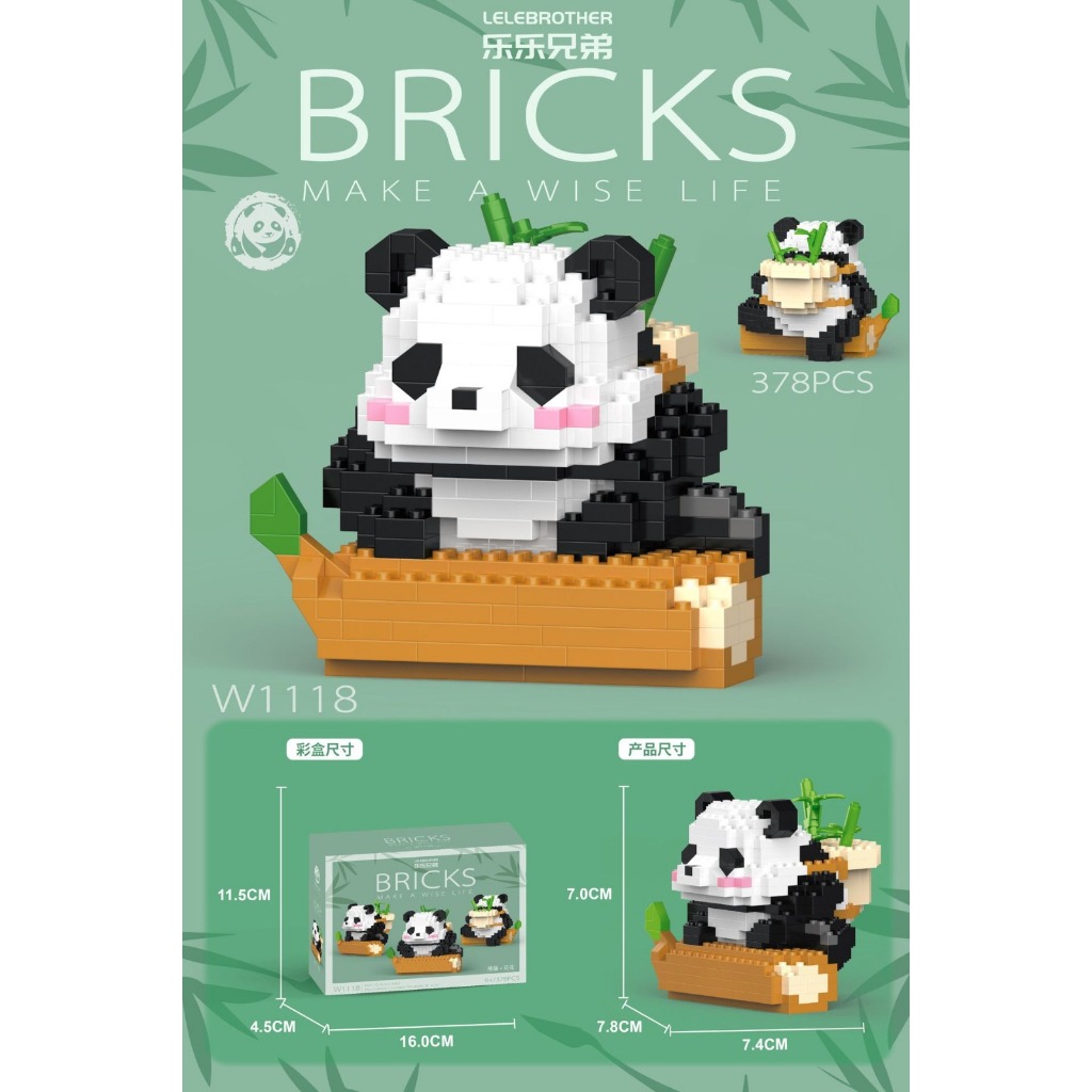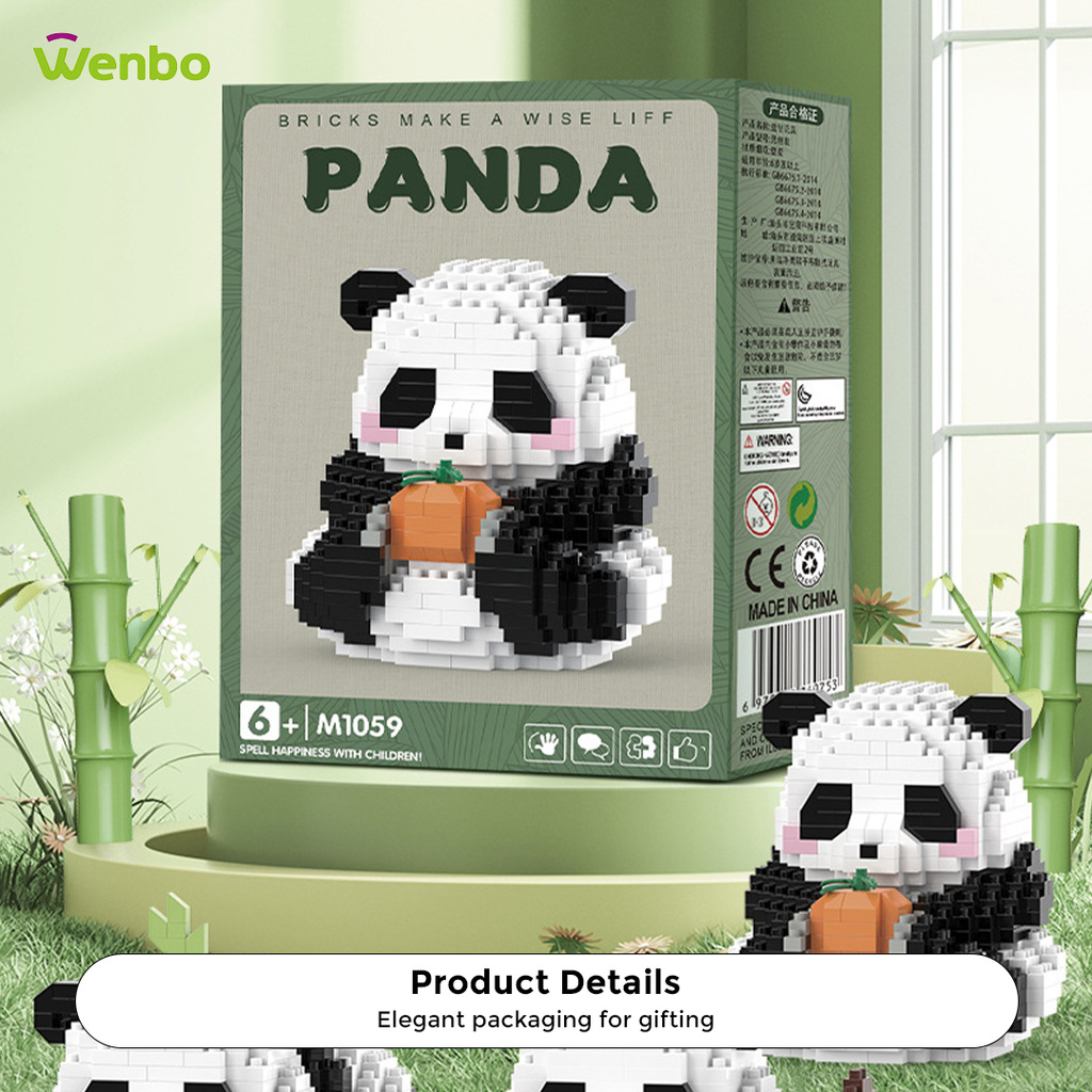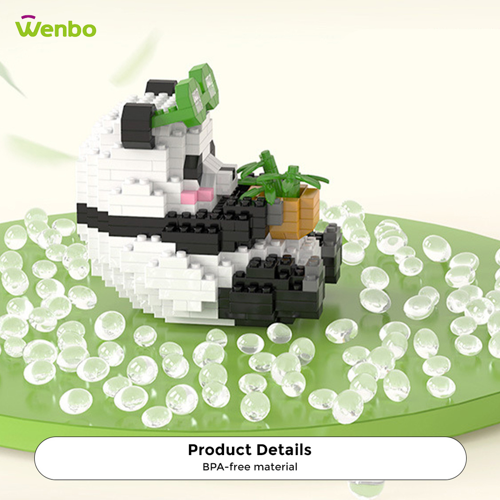 Wenbo Cute Panda Building Block Particle Assembled Blocks Hua Hua Panda Daily Life Model Children Educational Toy