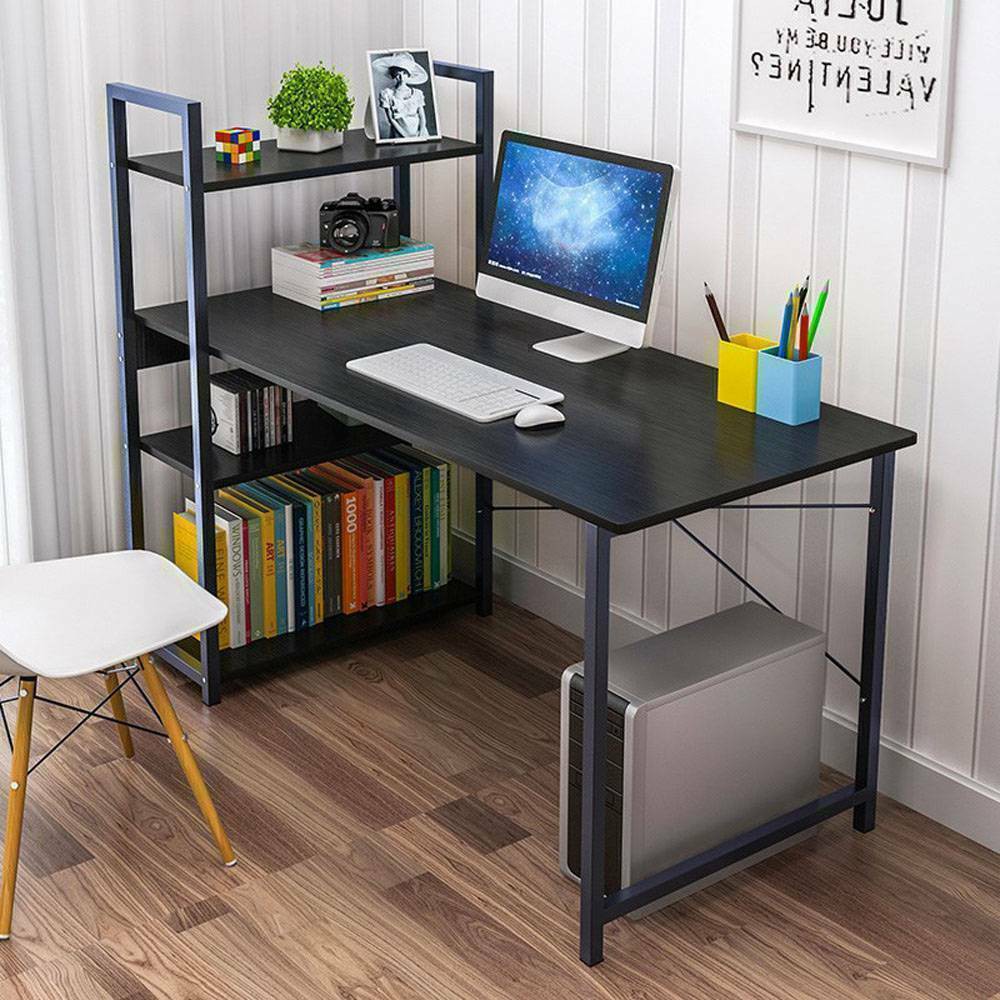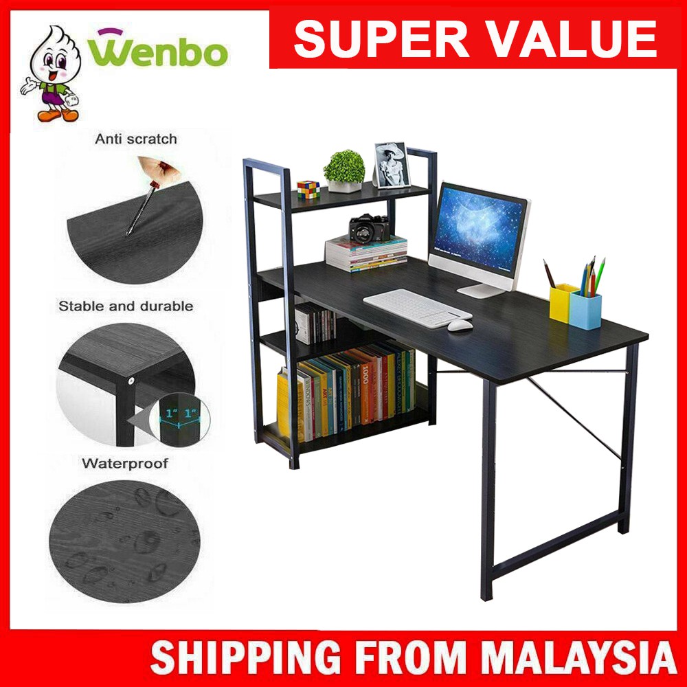 Wenbo Meja Modern Computer Desktop Study Table / Computer Table / Workstation with Book Shelf/ With Rack HomeHuk