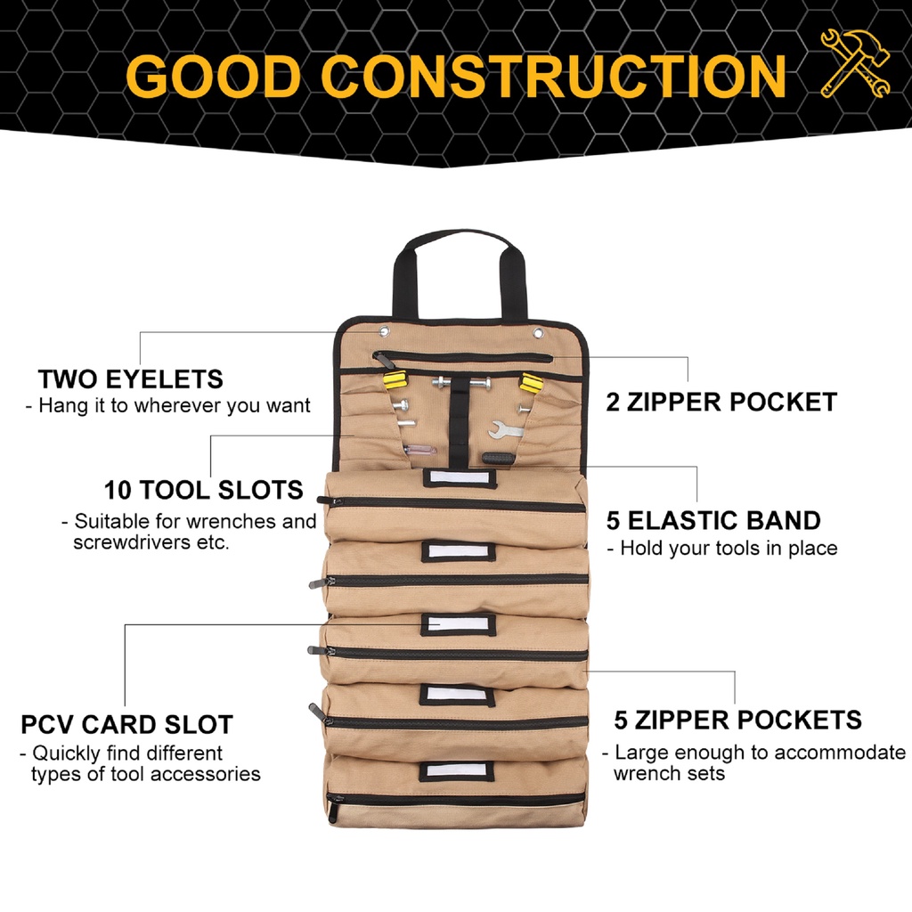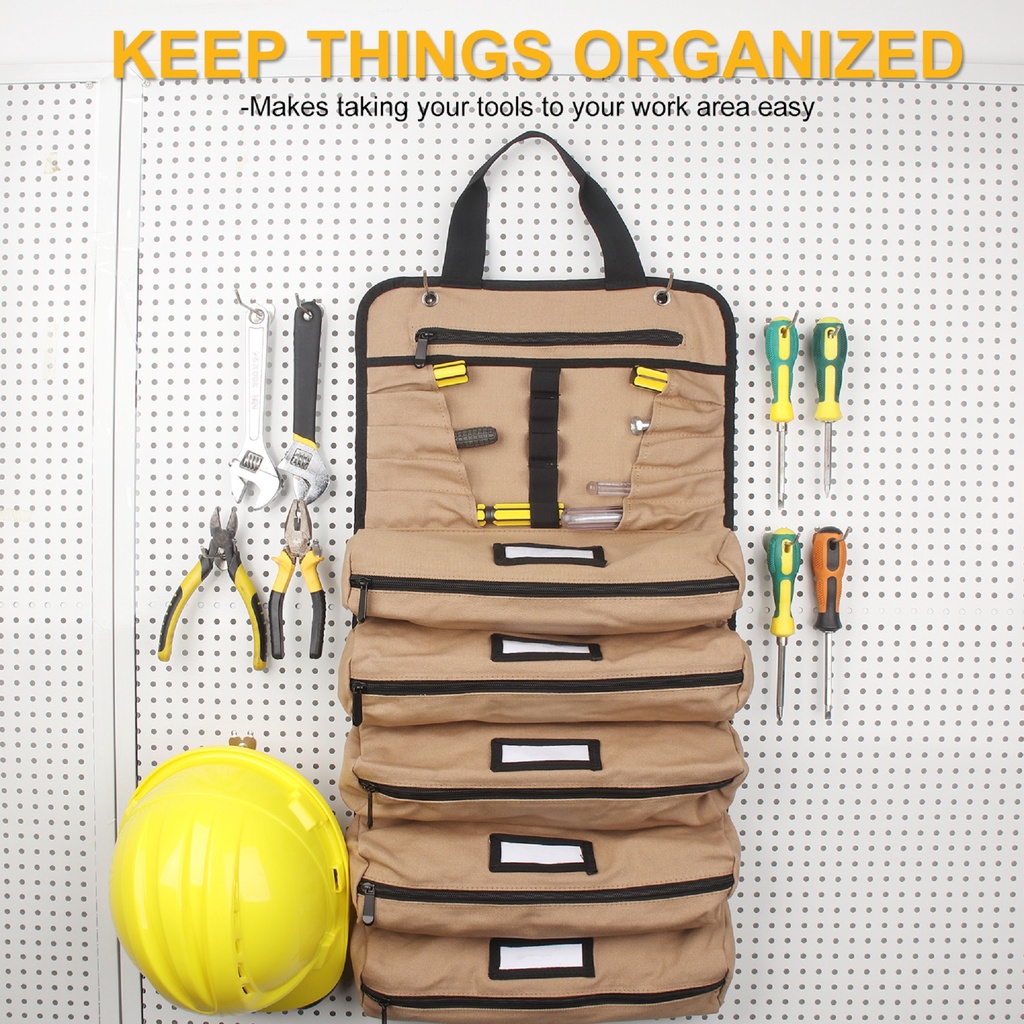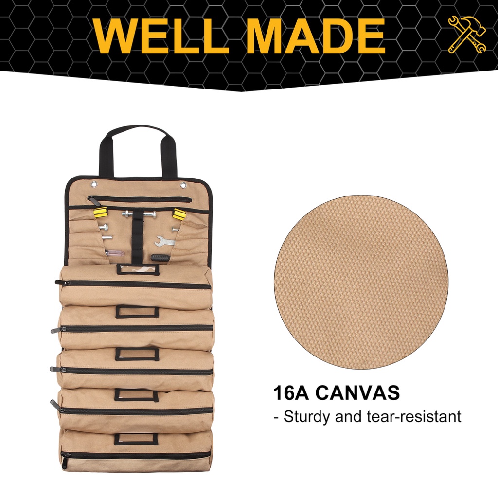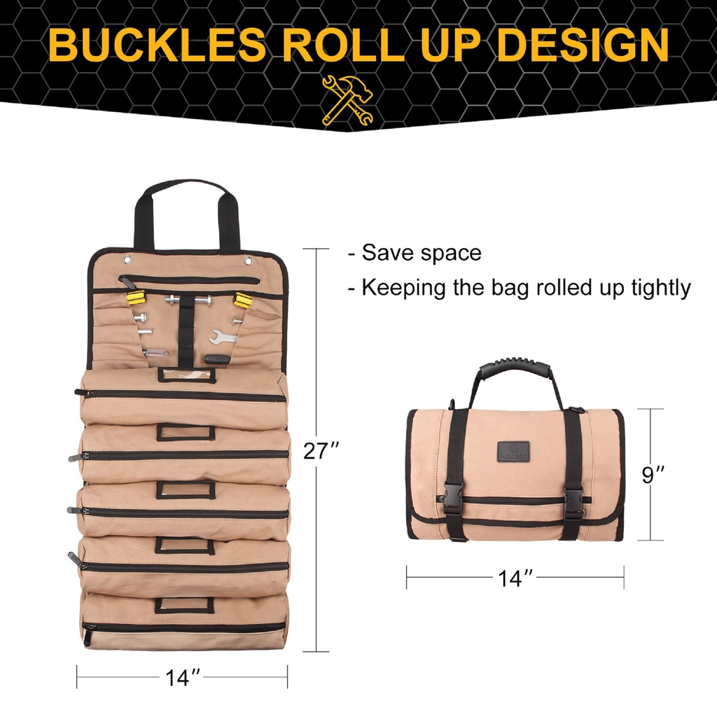 Wessleco Large Canvas Roll Up Tool Bag With Shoulder Strap Multifunction Electrician Tool Storage Bag Portable Tool Shou