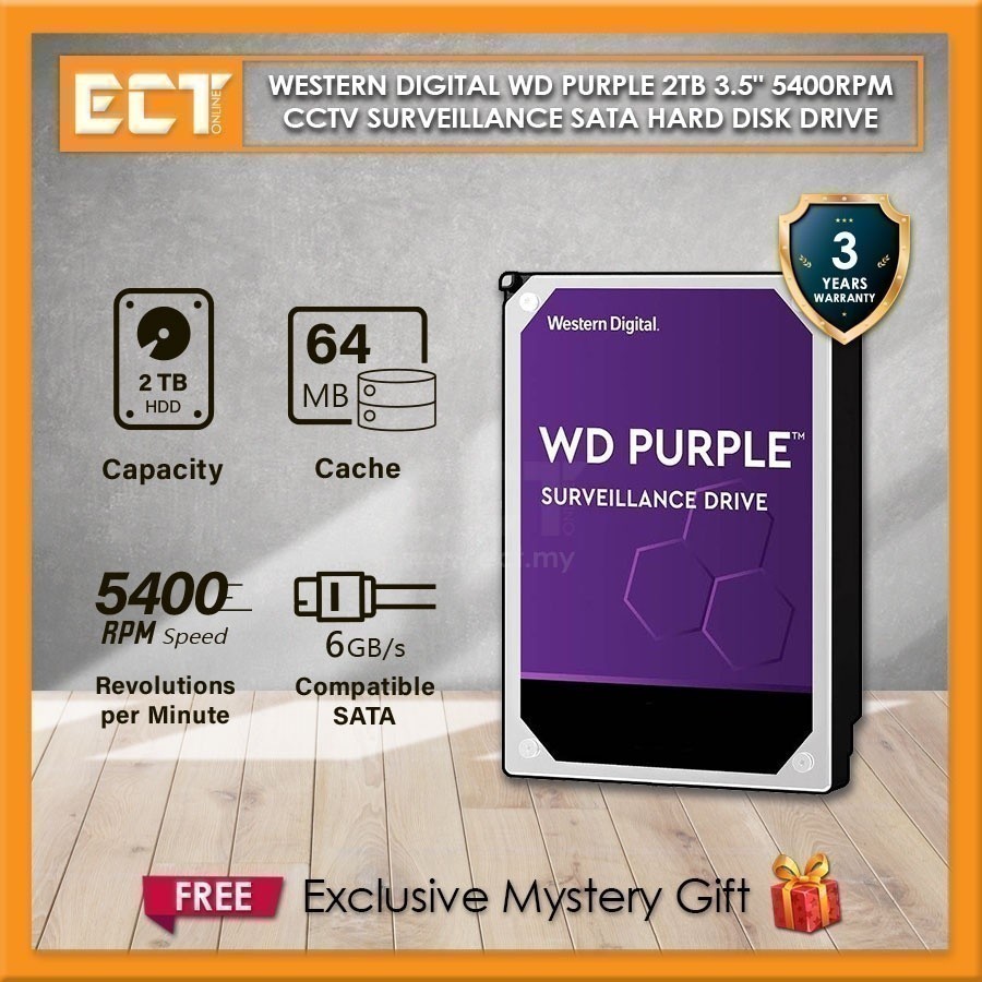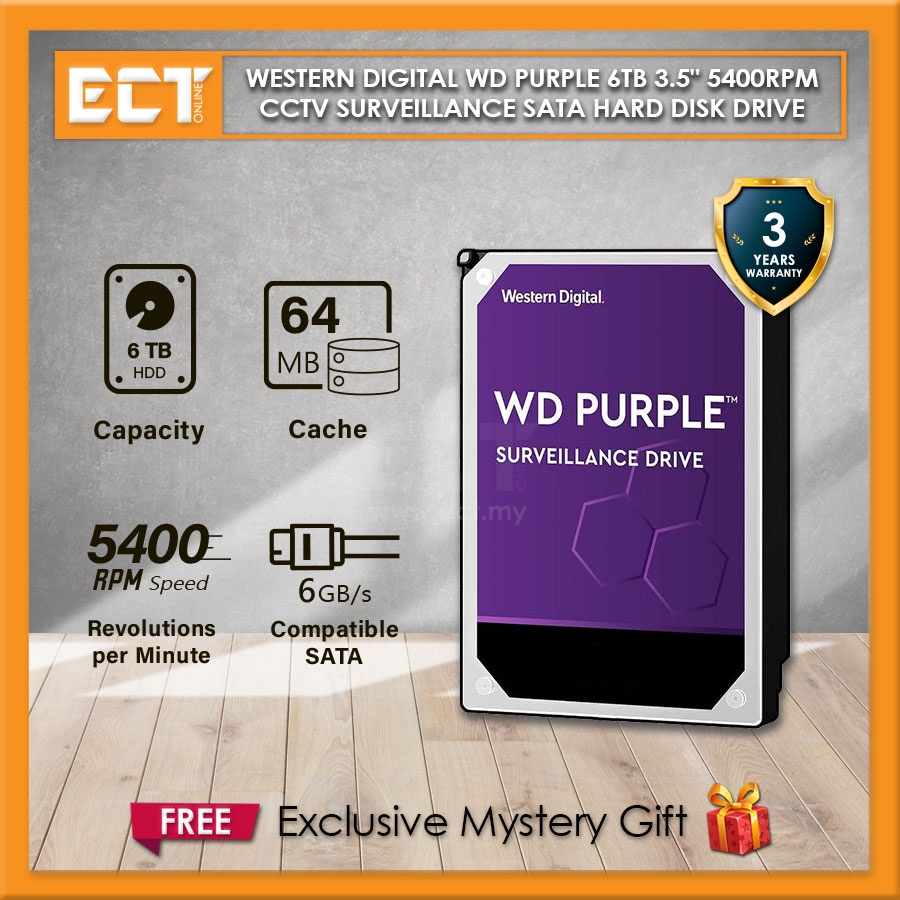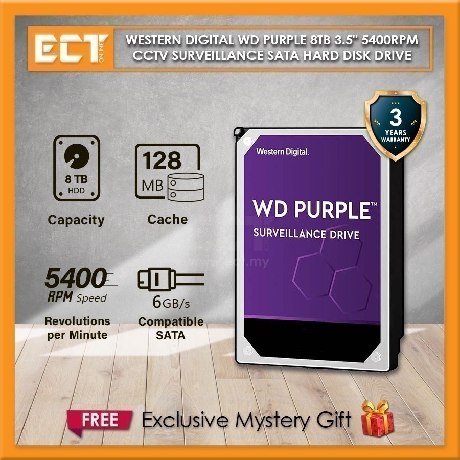 Western Digital WD Purple 1TB | 2TB | 3TB | 4TB | 6TB | 8TB 3.5" 5400RPM CCTV Surveillance SATA Hard Disk Drive HDD